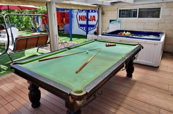 מהסלון קיימת יציאה למרפסת דק 45 מטר הכוללת פינת ישיבה ושולחן פינג פונג
