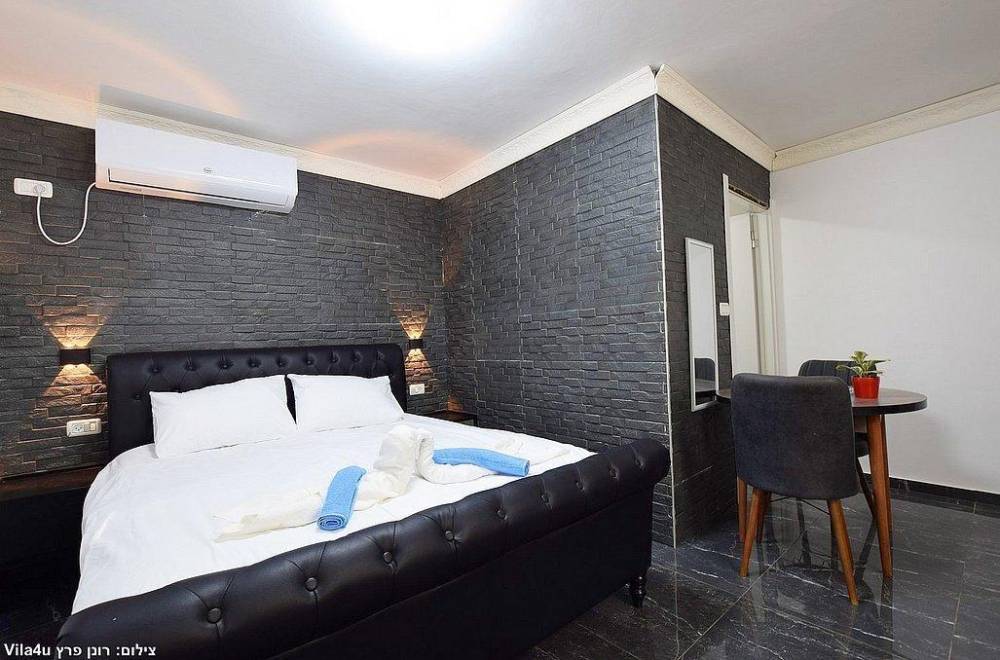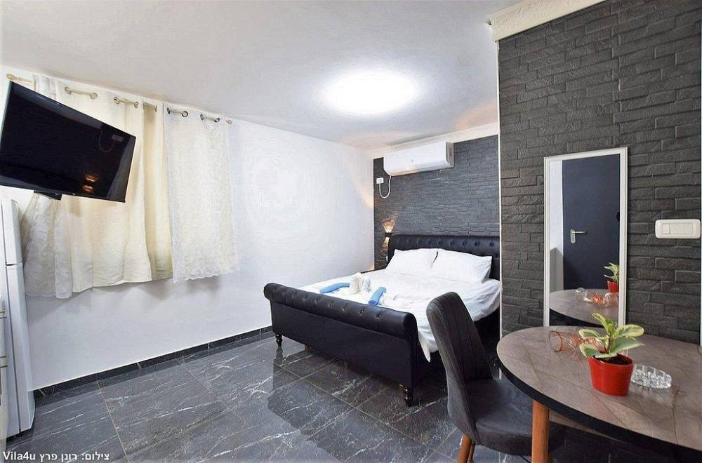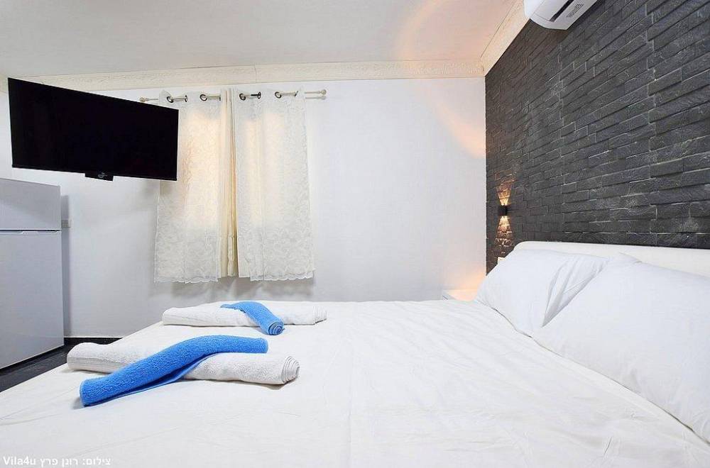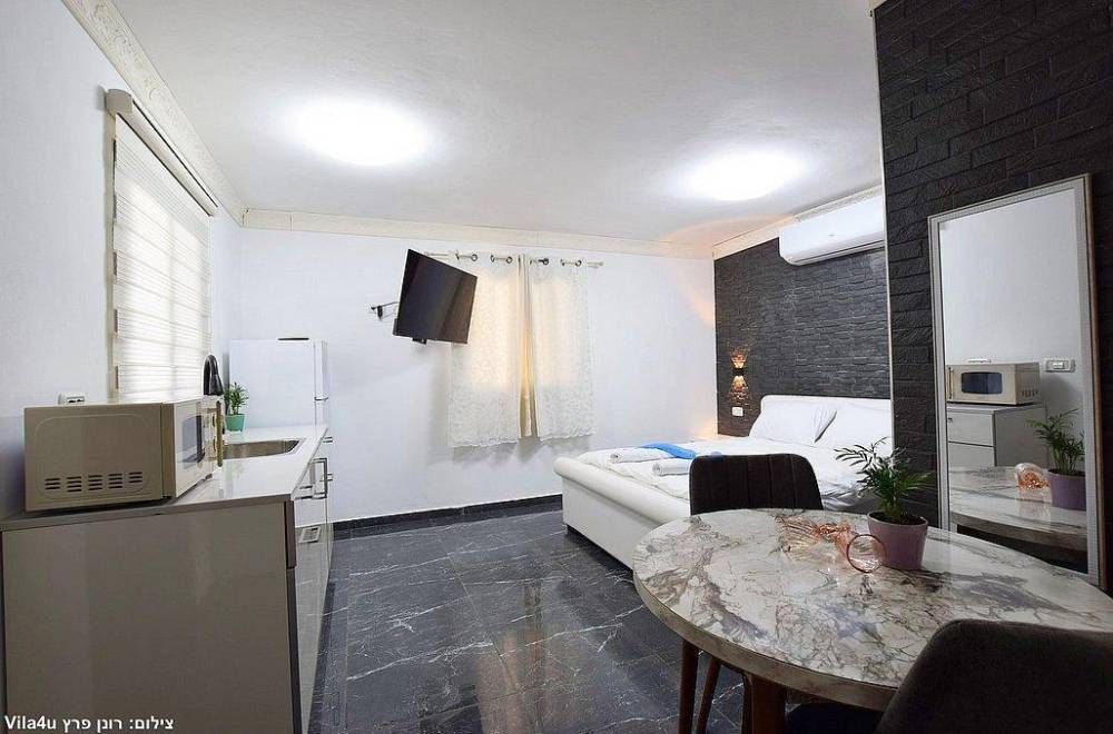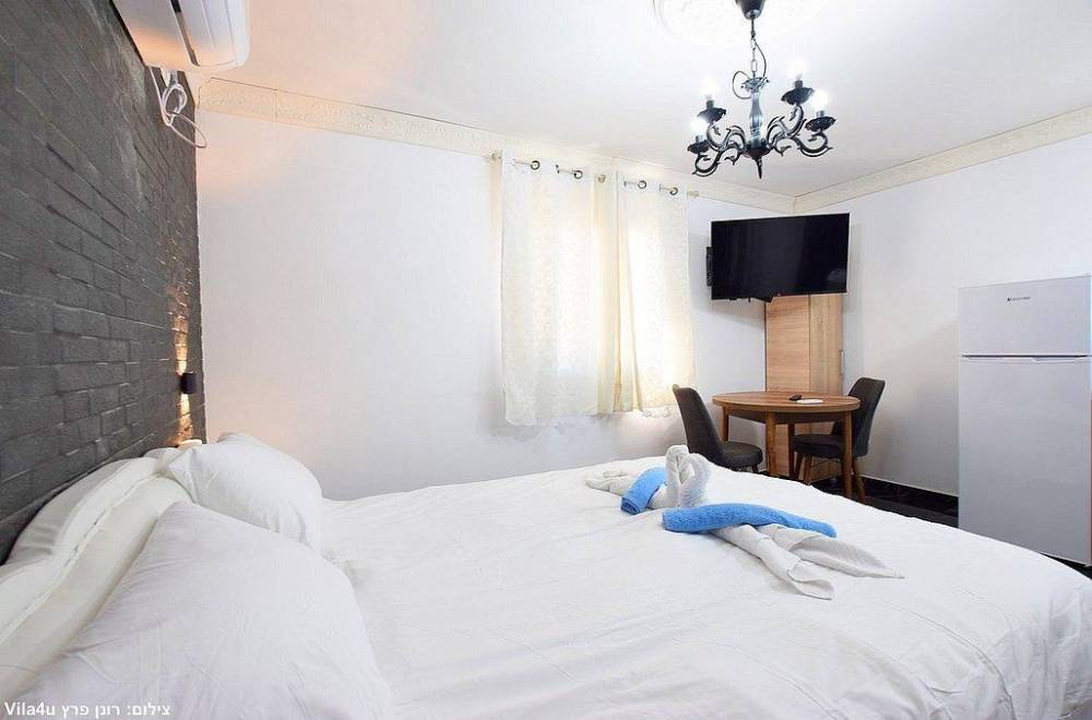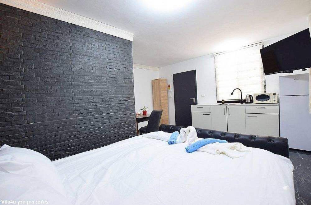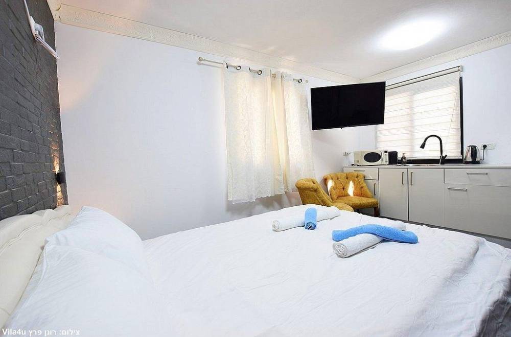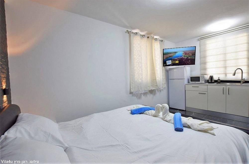 מיטה זוגית, שידה וארון, מיזוג אוויר, מסך LCD עם חיבור להוט, פינת אוכל, מטבחון מאובזר, חדר רחצה פרטי הכולל מקלחון ושירותים