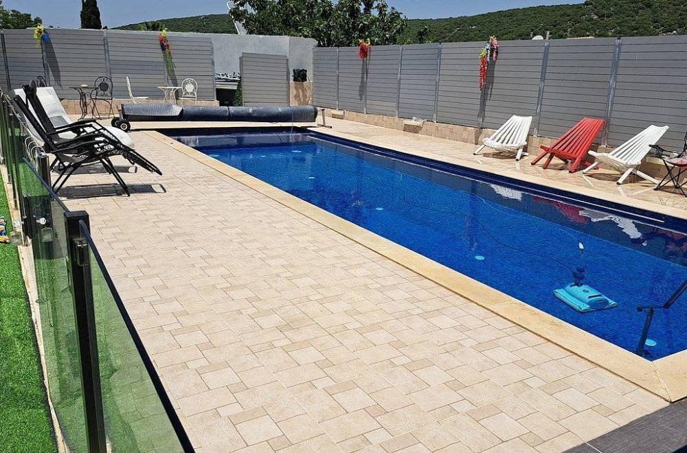 בריכת שחייה מתועשת מפסיפס, גודל 11X4 הבריכה מגודרת