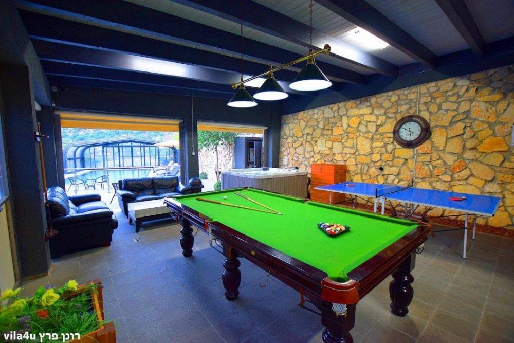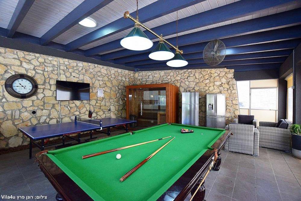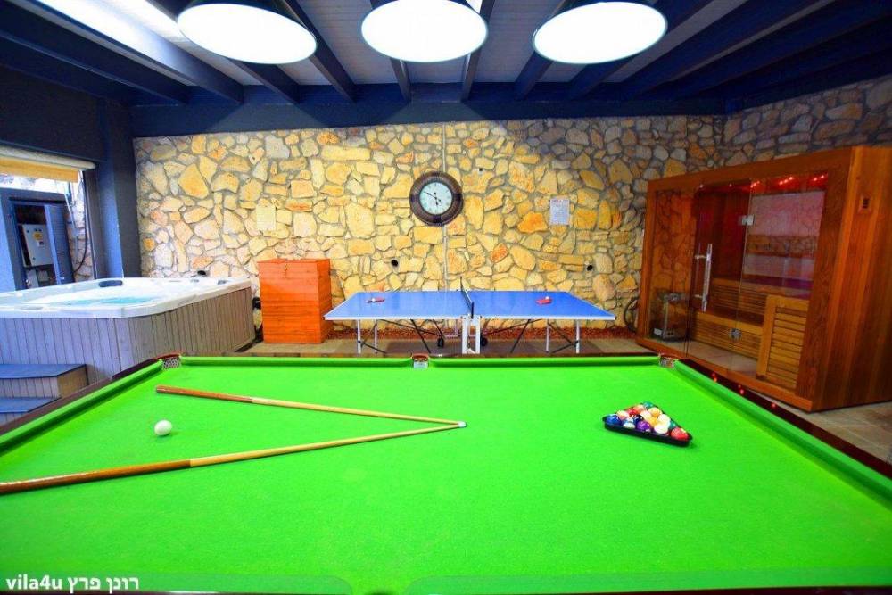מתחם מקורה עם ג'קוזי ספא אמריקאי ל-10 איש, סאונה יבשה ל-5 איש, שולחן סנוקר ושולחן פינג פונג
