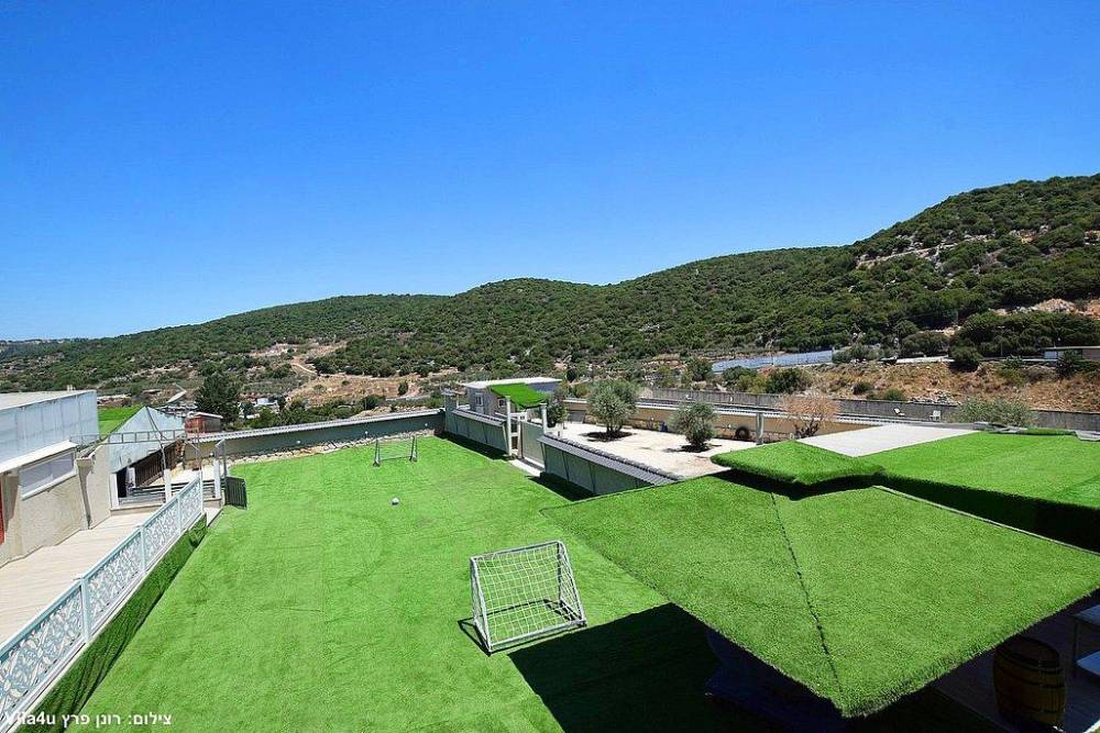 - חצר ענקית עם מדשאות ומגרש כדורגל עם 2 שערים וכדור