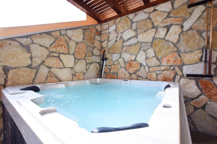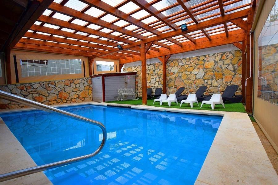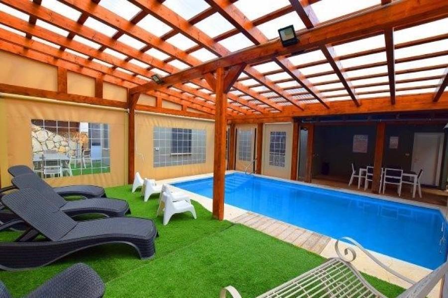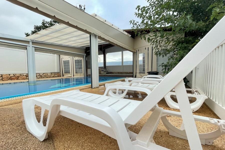 - בריכת שחייה עם ספסל ג'טים וזרמים מובנה, הבריכה מגודרת ובטיחותית _גודל 7 על 4, עומק 1.40)