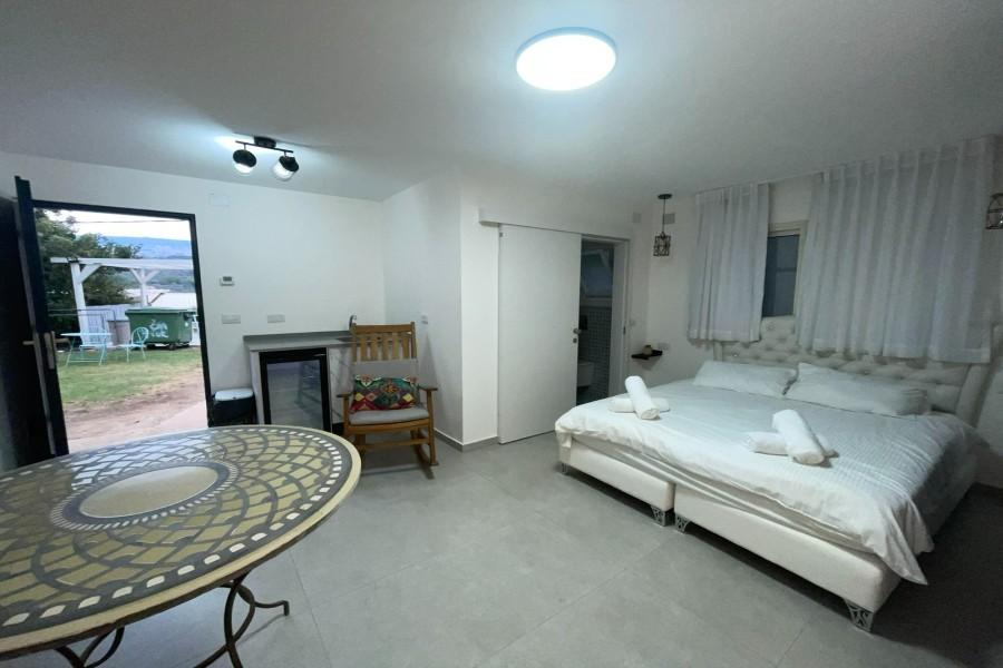 סטודיו עם מיטה זוגית, מזגן, מקלחת ושירותים מטבחון הכולל: כיריים גז, תנור, תמי 4, מקפיא חיצוני.