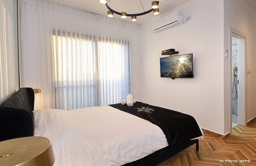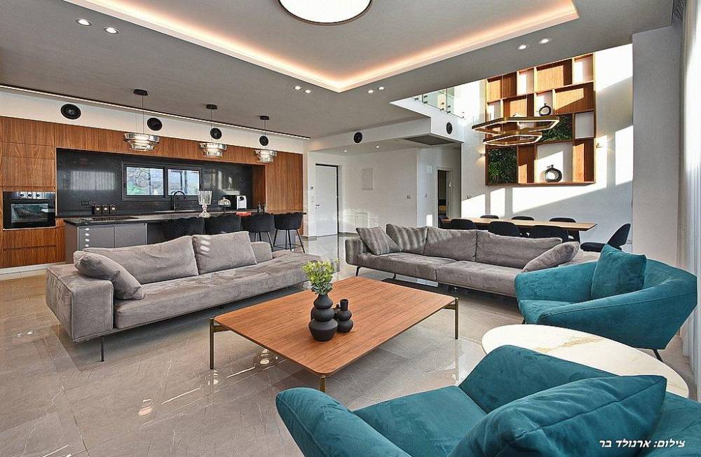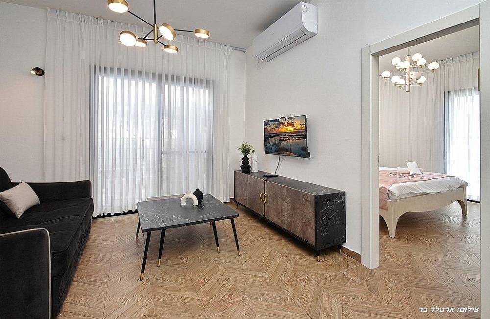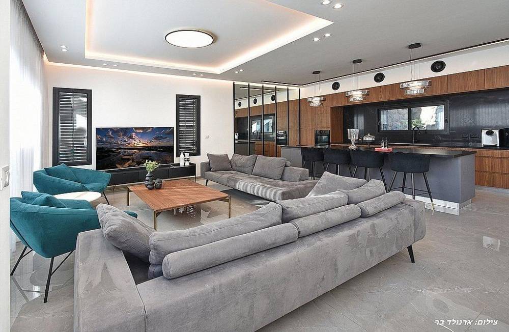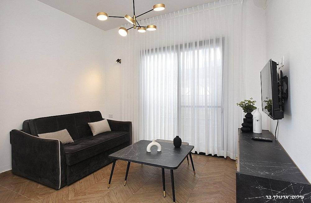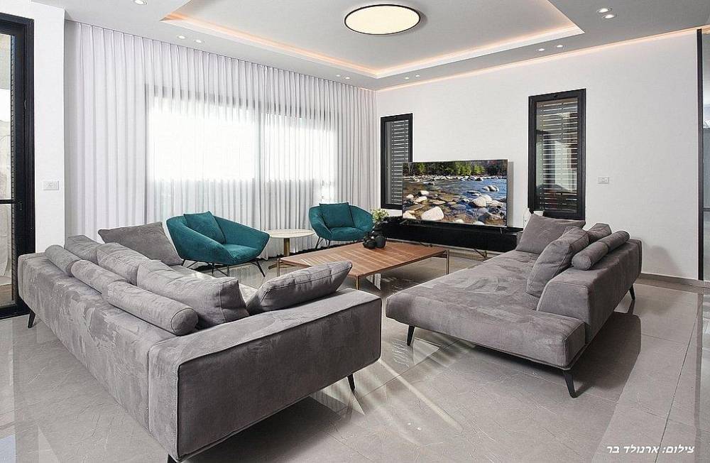 סלון יוקרתי + מסך טלוויזיה בגודל 75 אינץ' עם חיבור ל-Yes