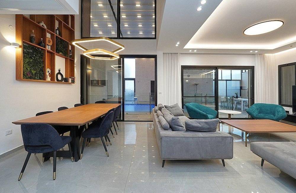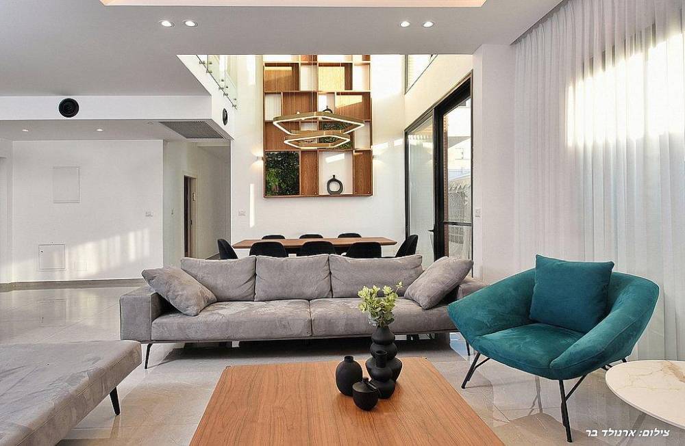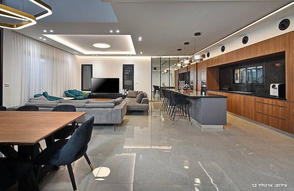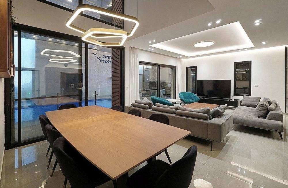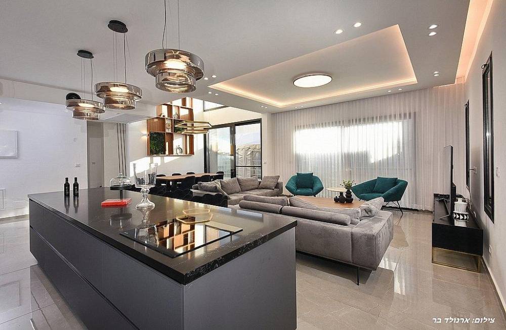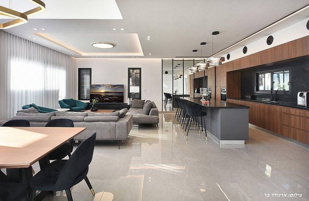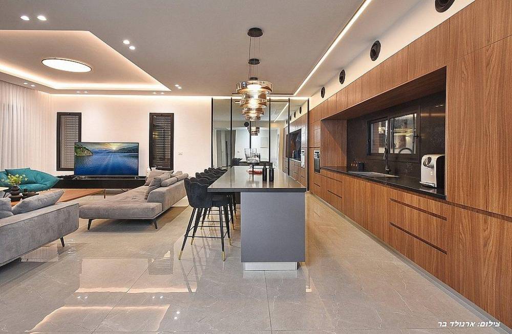 סלון יוקרתי + מסך טלוויזיה בגודל 75 אינץ' עם חיבור ל-Yes