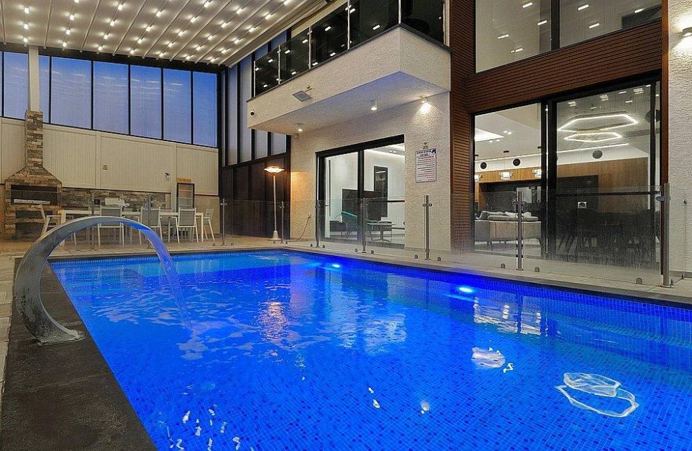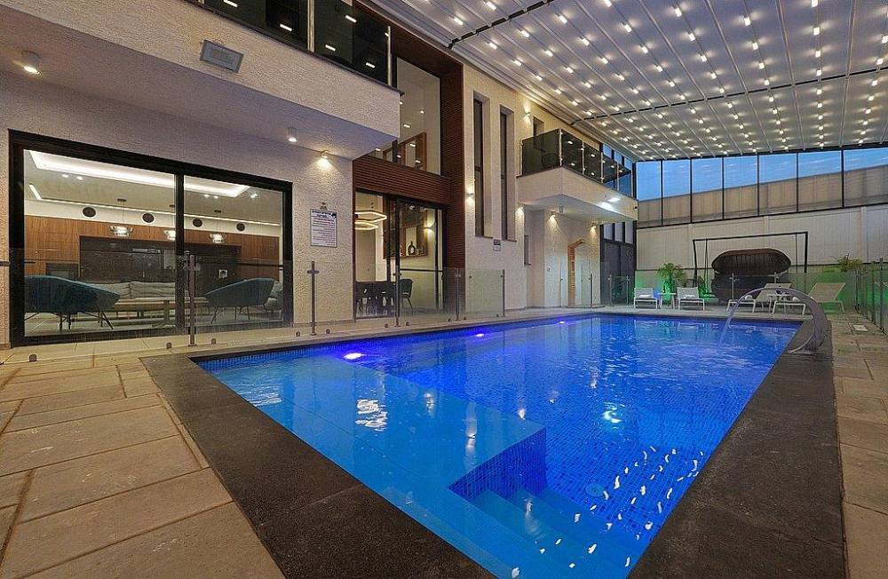 בריכת שחייה גדולה מחוממת מקורה בגודל 9X4