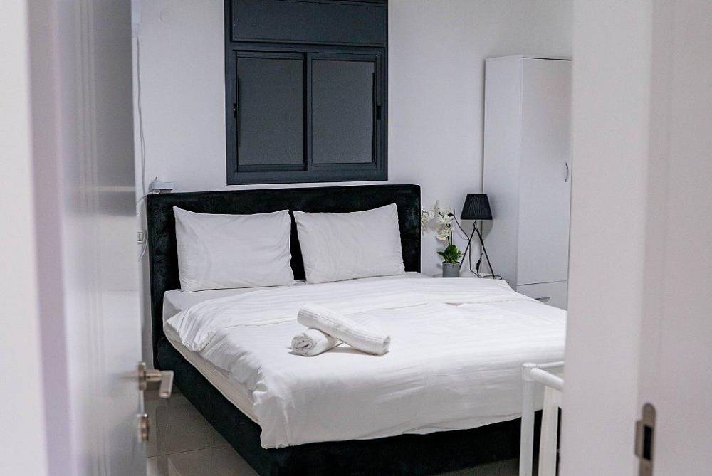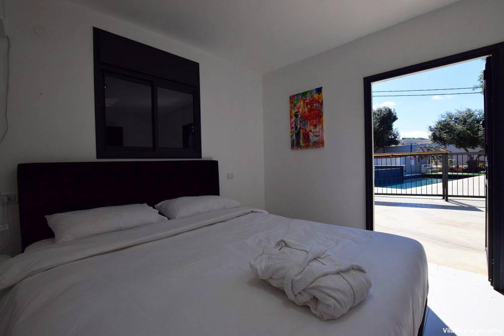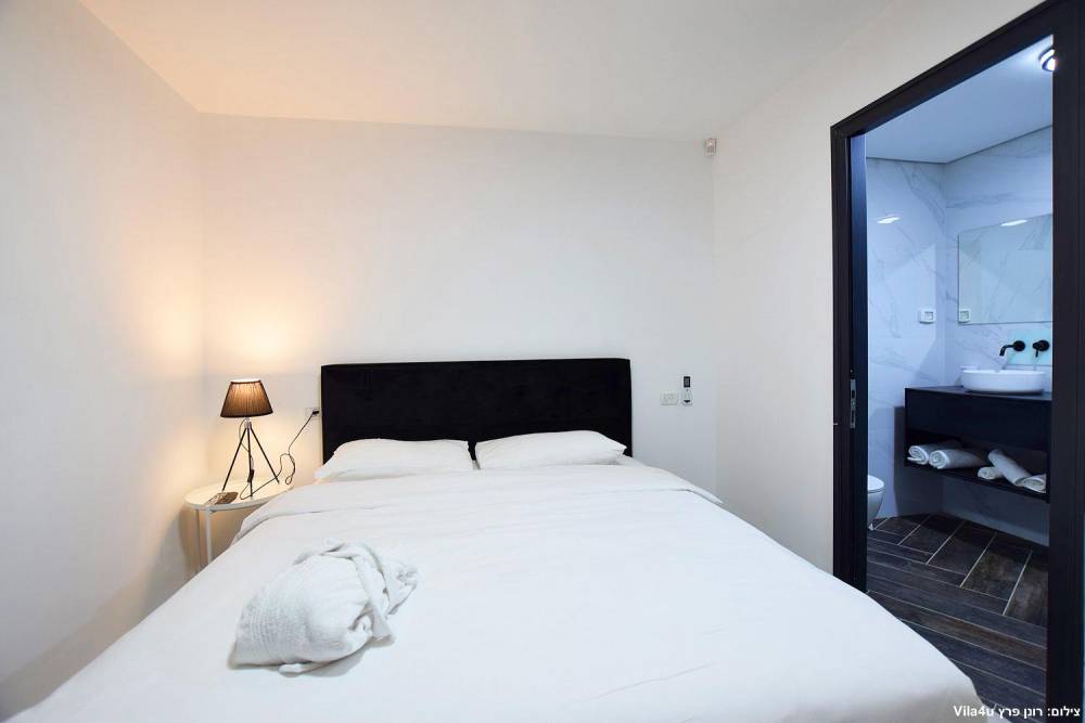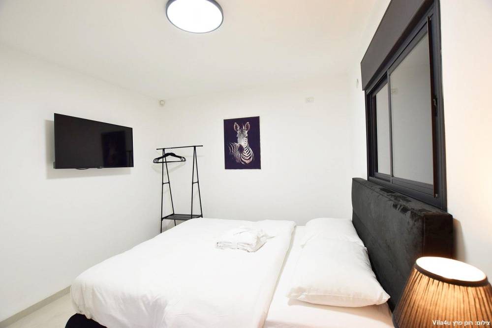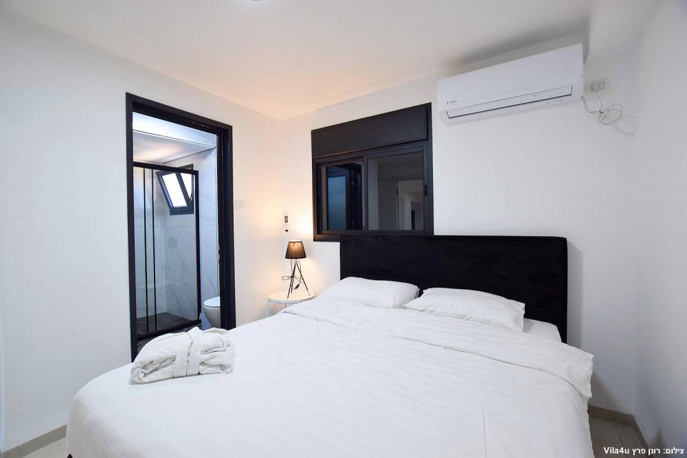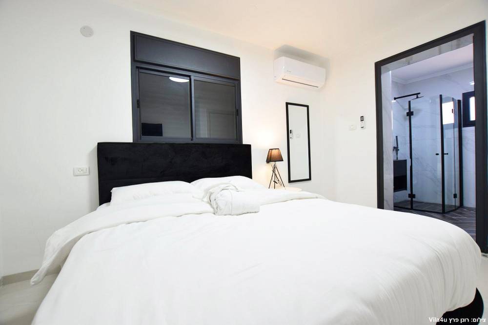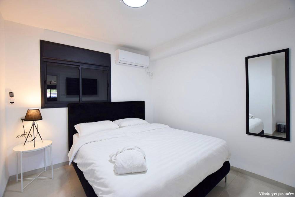 4 חדרי שינה זוגיים הכוללים מיטה זוגית מוצעת, טלוויזיה חכמה, מיזוג אוויר ושידות אחסון