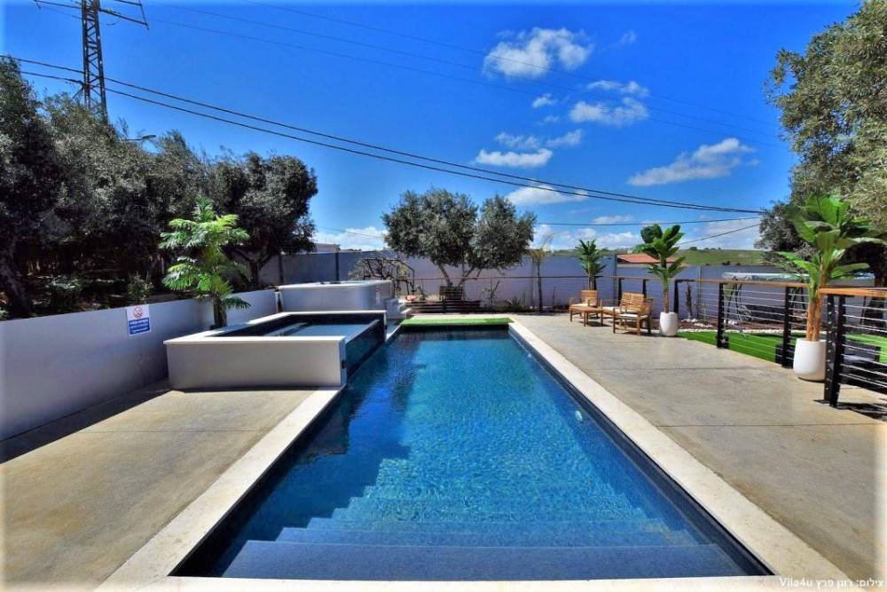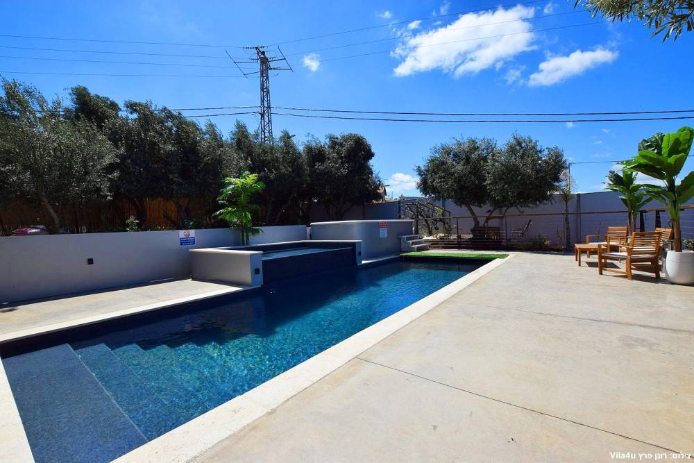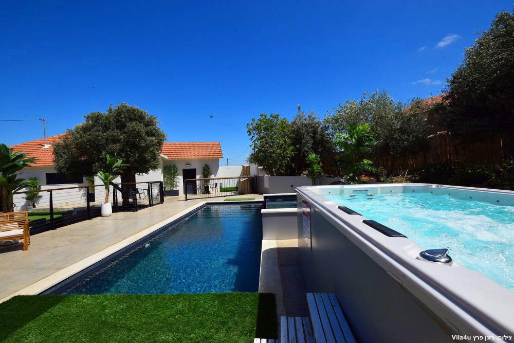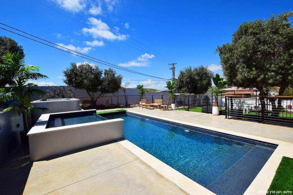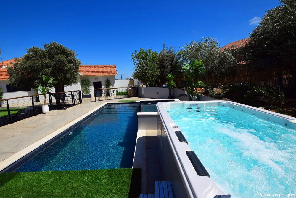 במתחם תוכלו להנות ממתחם חיצוני מטופח עם מדשאות, פינות ישיבה, מטבח חוץ, עמדת מנגל מקצועית, בריכת זרמים מגודרת ומחוממת ואף ג'קוזי ספא מפנק.
