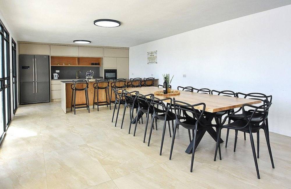 מטבח + אי הכולל: מקרר, מיקרוגל, תנור אפייה, כירה חשמלית גדולה, תמי 4, פלטות ומיחמים לשבת