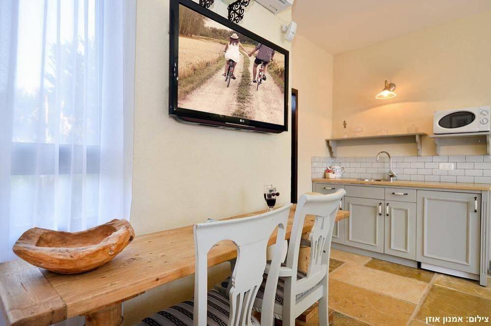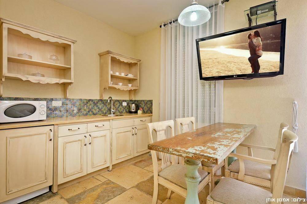 מטבח ובו: מיקרוגל, מדיח, פלטה חשמלית לבישול, תמי 4 , תנור, כלי הגשה, סירים