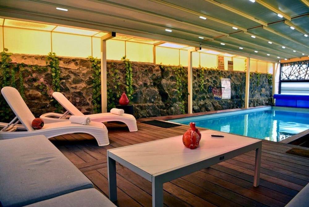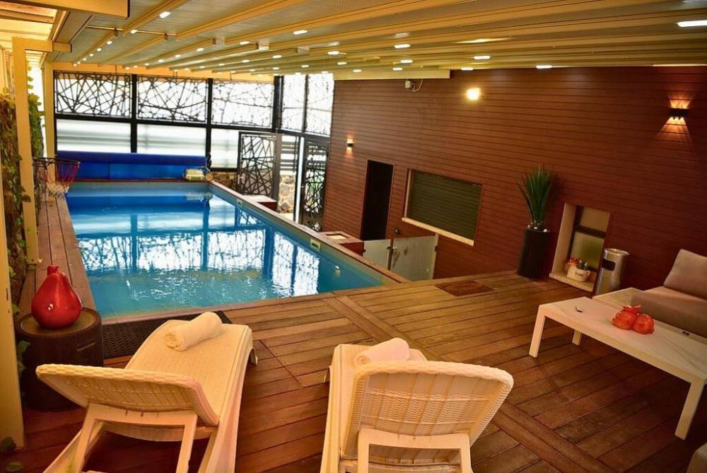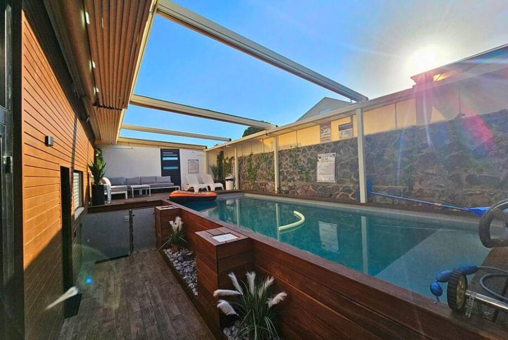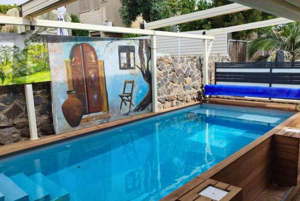 יציאה לבריכת שחייה פרטית, מחוממת ל29 מעלות עם פרגולה חשמלית לבחירתכם של צל או שמש