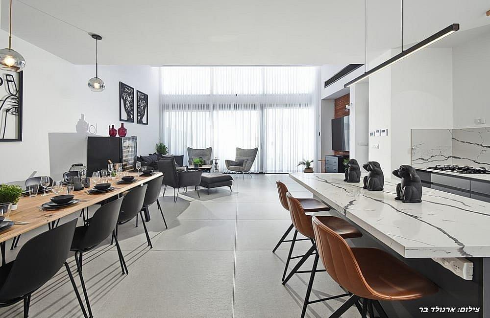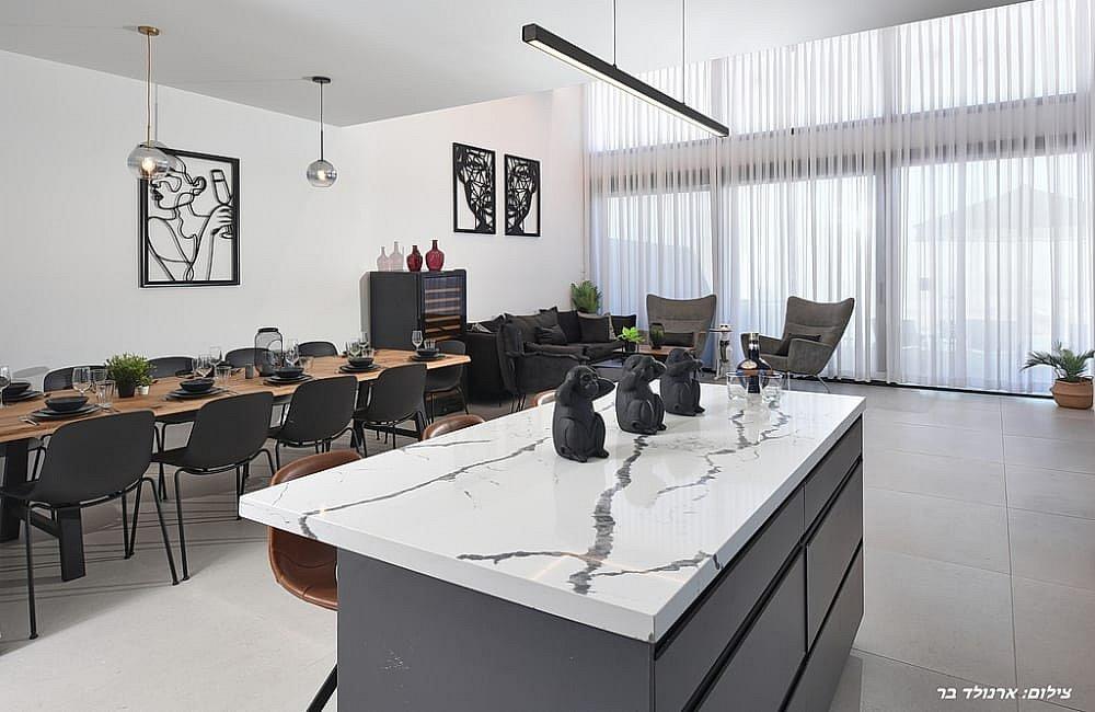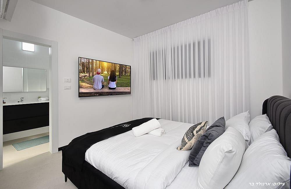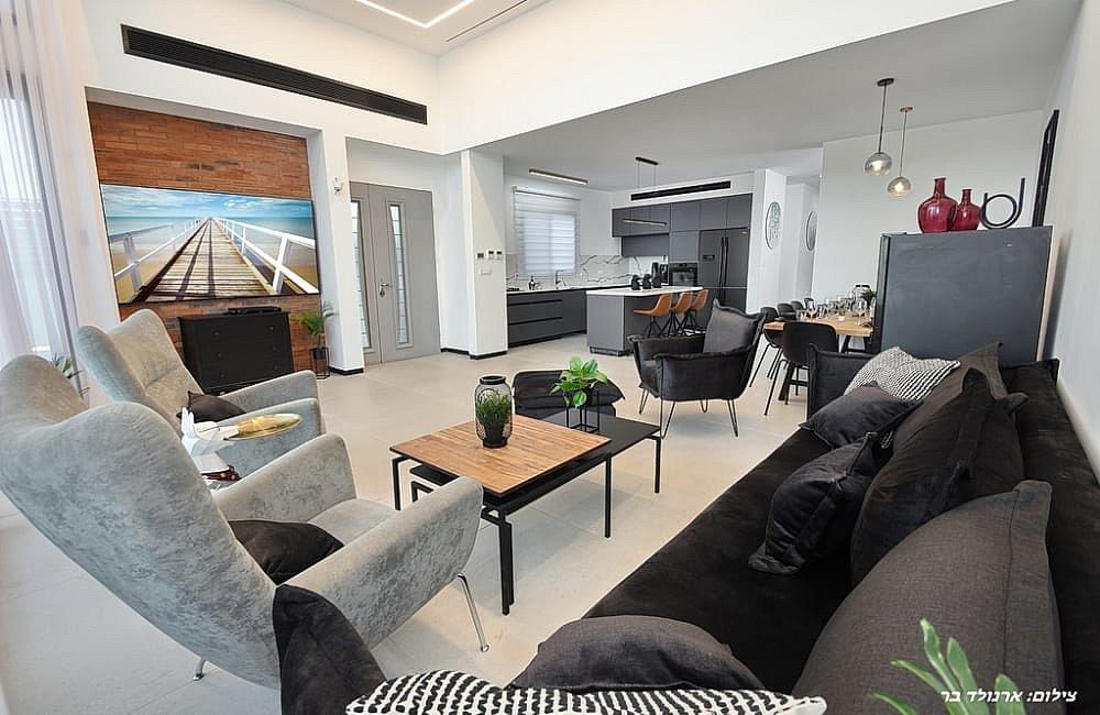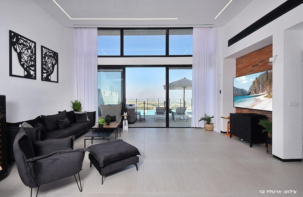סלון יוקרתי ענק + מסך צפייה גדול 85 אינץ חיבור ל-yes