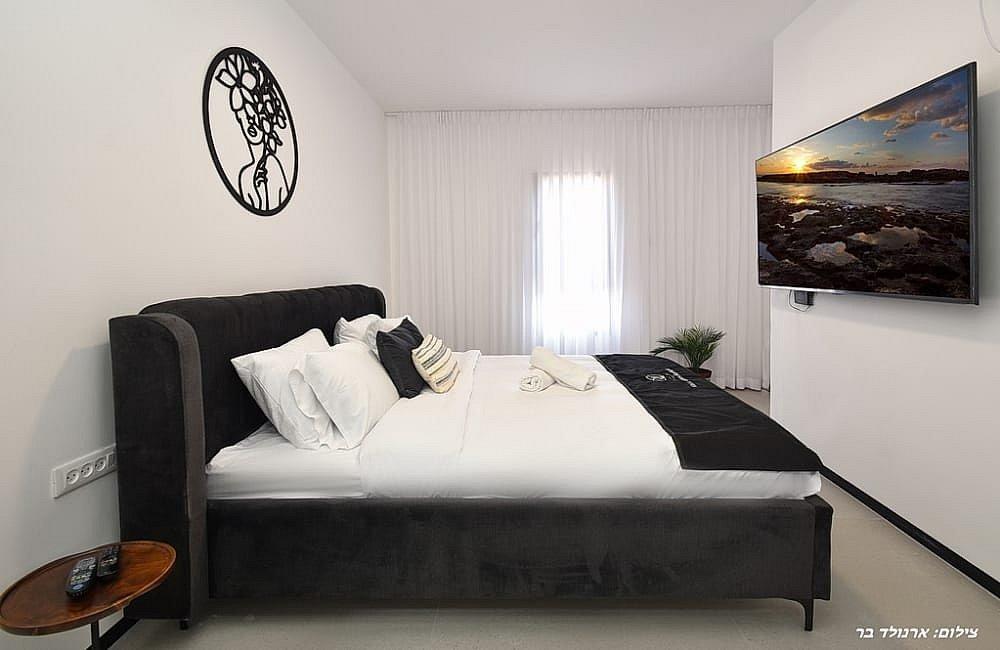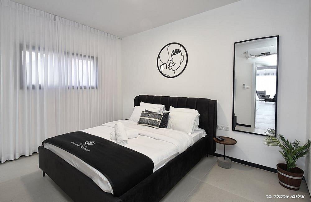 אבזור חדרי השינה: מיטה זוגית, מיזוג אוויר, שידה