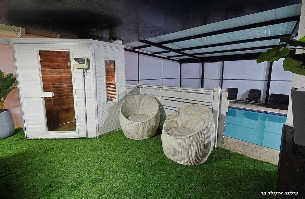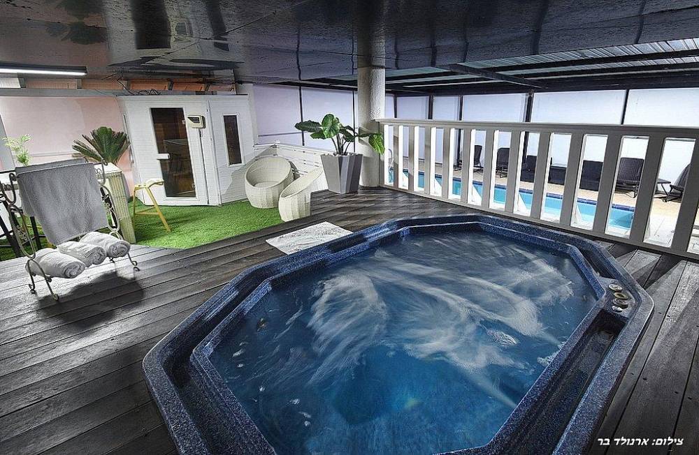 ג'קוזי ספא מחומם ומקורה (12 מקומות) ומולו מסך טלוויזיה
