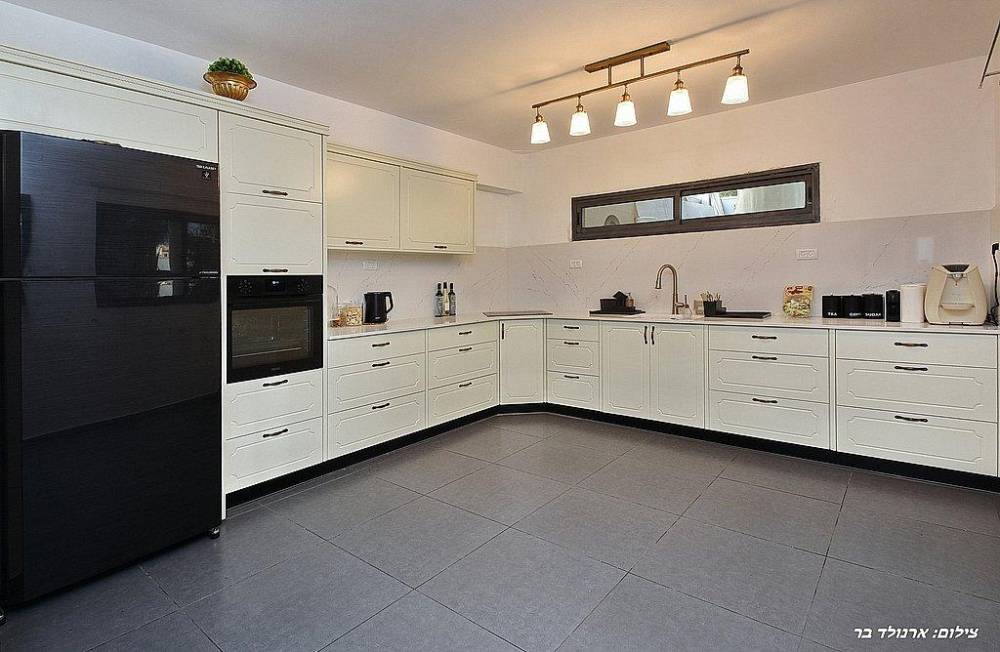מטבח יוקרתי הכולל - תנור אפייה, מקרר, כיריים, מתקן מים, כלי אוכל והגשה