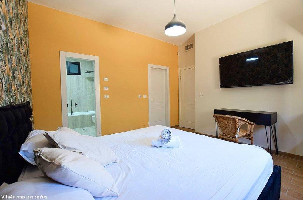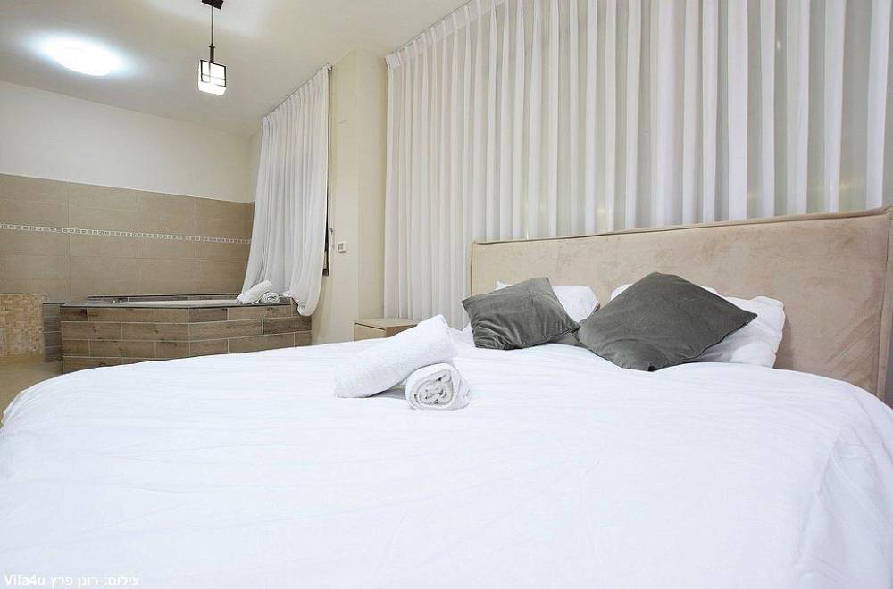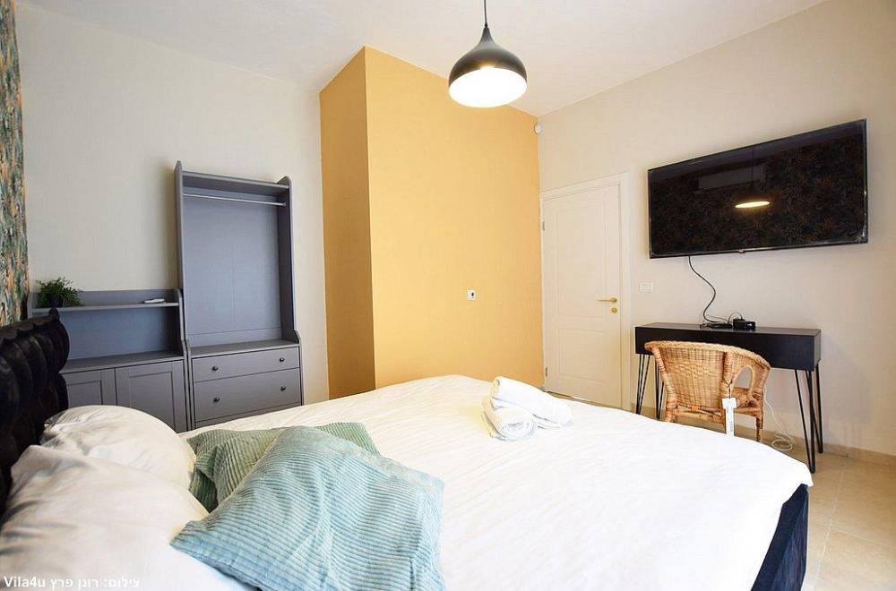 מיטה זוגית, מיזוג אוויר, טלוויזיה עם חיבור לערוצי HOT וארון אחסון. לאחד מהחדרים קיים חדר רחצה פרטי.