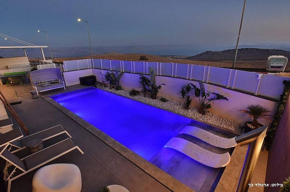 הוילה ממוקמת בנוף כנרת והיא כוללת 6 חדרי שינה, סלון מעוצב, מטבח מאובזר, מתחם חיצוני עם בריכה גדולה, משחקי שולחן, ג'קוזי ספא, סאונה רטובה ועוד.