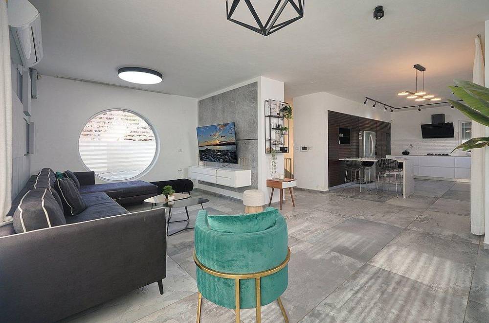 סלון מרווח עם טלוויזיה חכמה, חיבור לנטפליקס חינם ויוטיוב (באישור הזמנה) ומערכת ישיבה