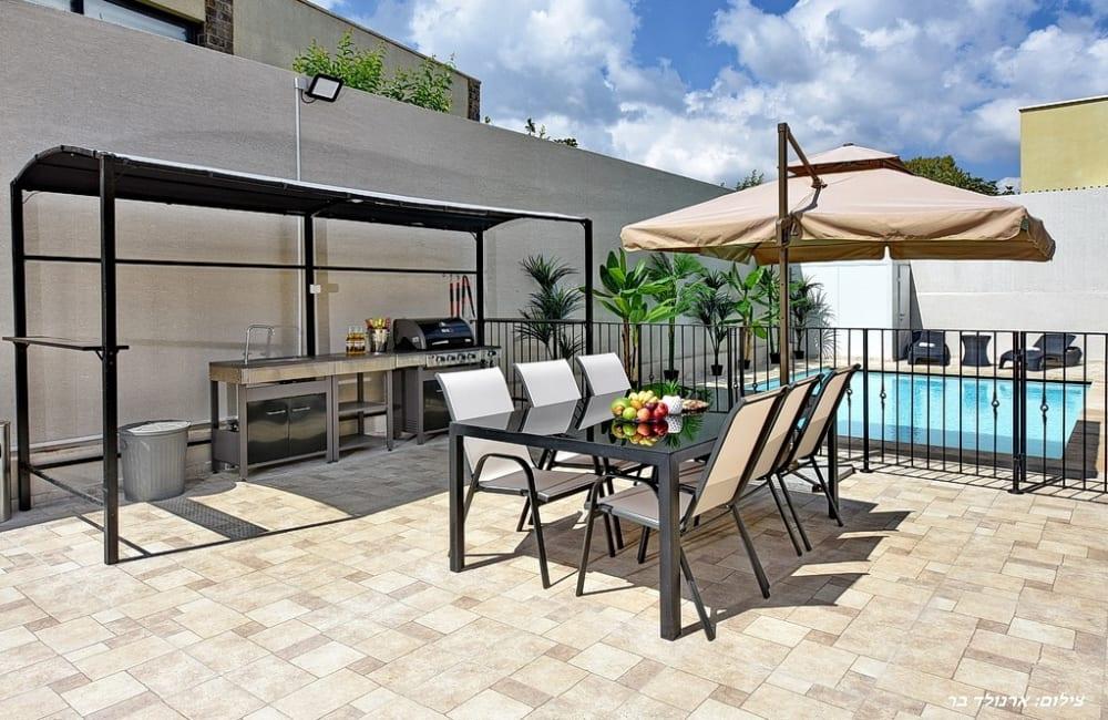 - מטבח חוץ מאובזר הכולל פינת ברביקיו