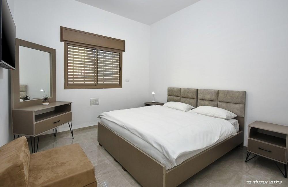 - הסוויטה: מיטה זוגית, 2 מיטות יחיד, שידות לאחסון, ארון גדול, מסך טלוויזיה, חדר רחצה פרטי, מיזוג אוויר.