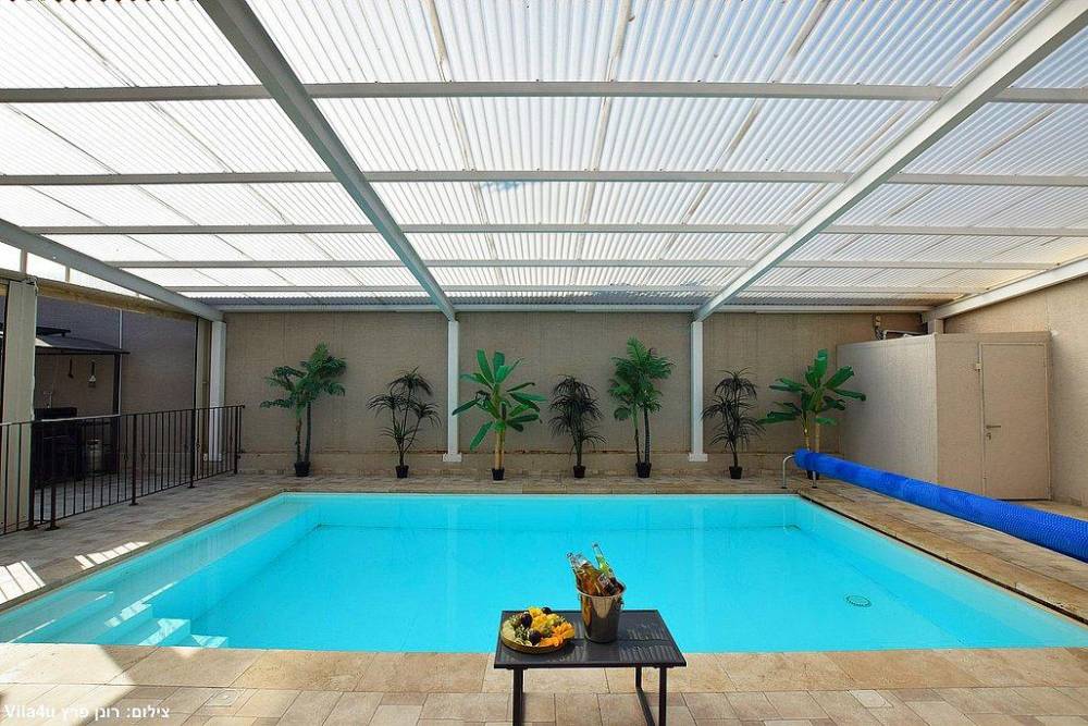 החצר? חוויה בפני עצמה: בריכה פרטית מחוממת ומקורה, ג’קוזי ספא, מיטות שיזוף, פינות ישיבה, שולחן פינג פונג, ברביקיו ומטבחון, ועוד שטח משחקים לילדים עם בית עץ, נדנדות וטרמפולינה.