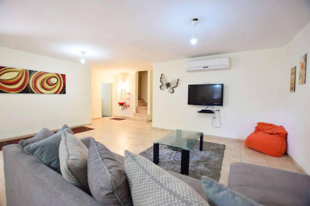 סלון גדול ומרווח עם מערכת ישיבה וטלוויזיה עם חיבור לערוצי HOT