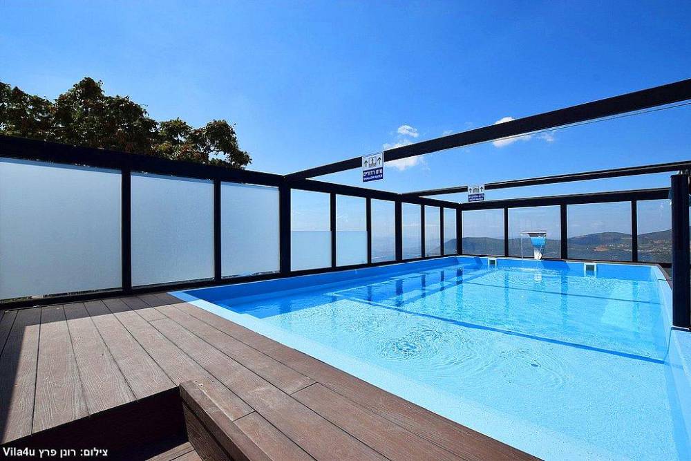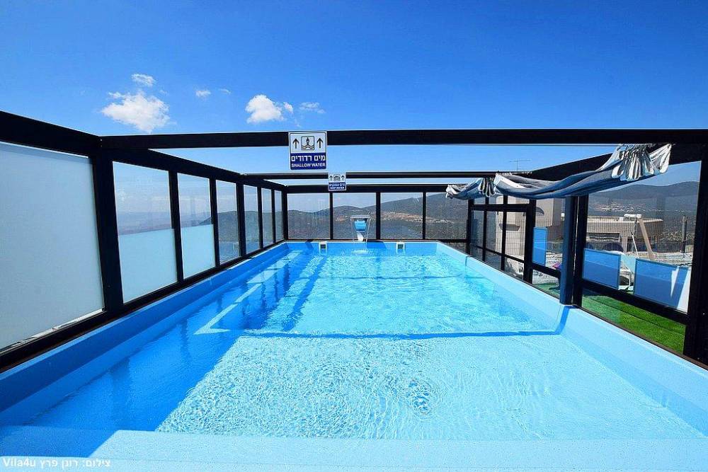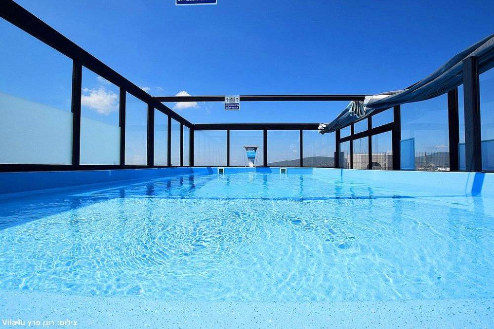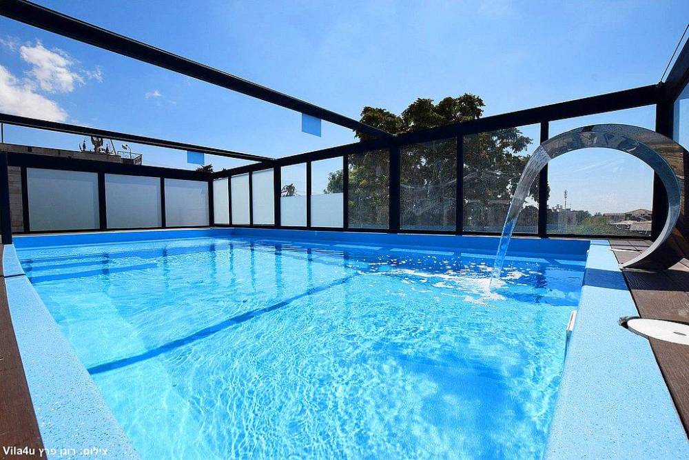 - גג עם בריכת שחייה בנויה, 8*4 עם ג'קוזי זרמים מפל ותאורה, קיימת רשת הצללה מהשמש במתחם הבריכה