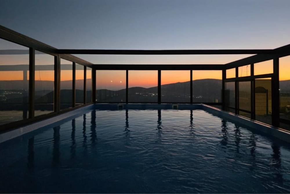 בריכה פרטית מחוממת – בגודל 8×4, עם זרמי ג’קוזי, תאורה ומפל מים