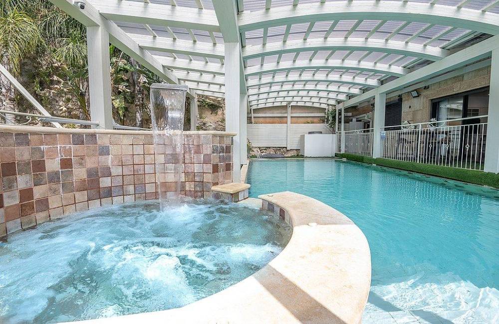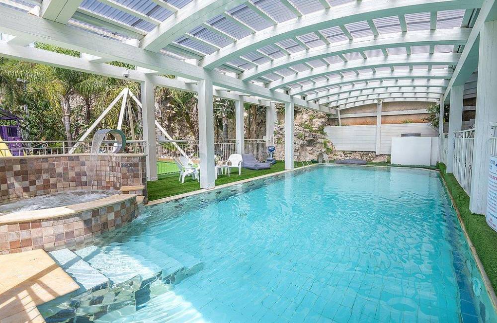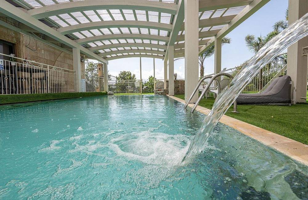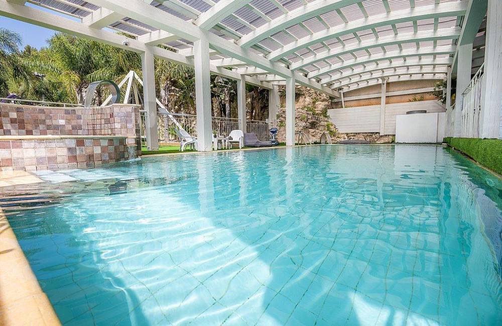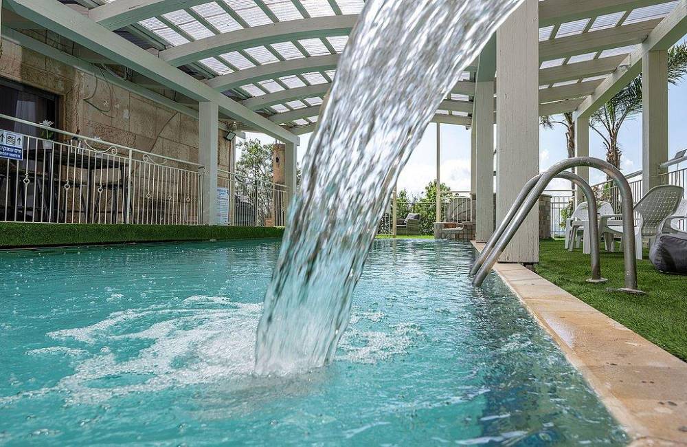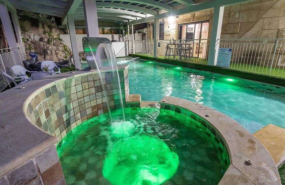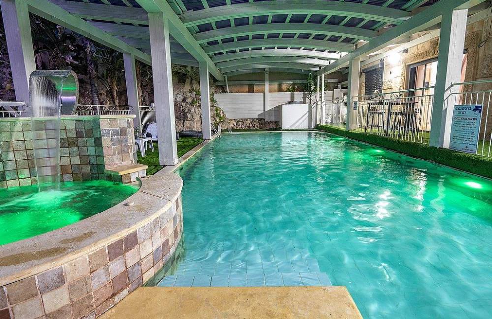 - בריכת שחייה פרטית מחוממת מקורה ומגודרת עם מפל מים