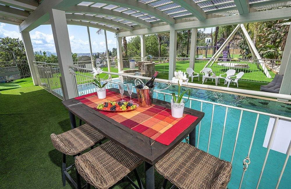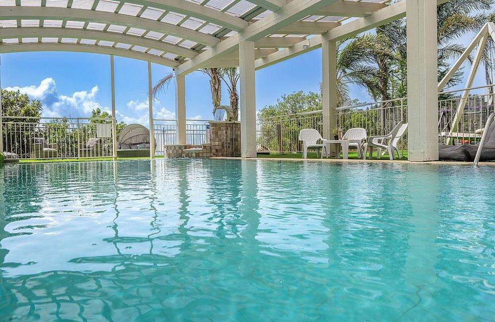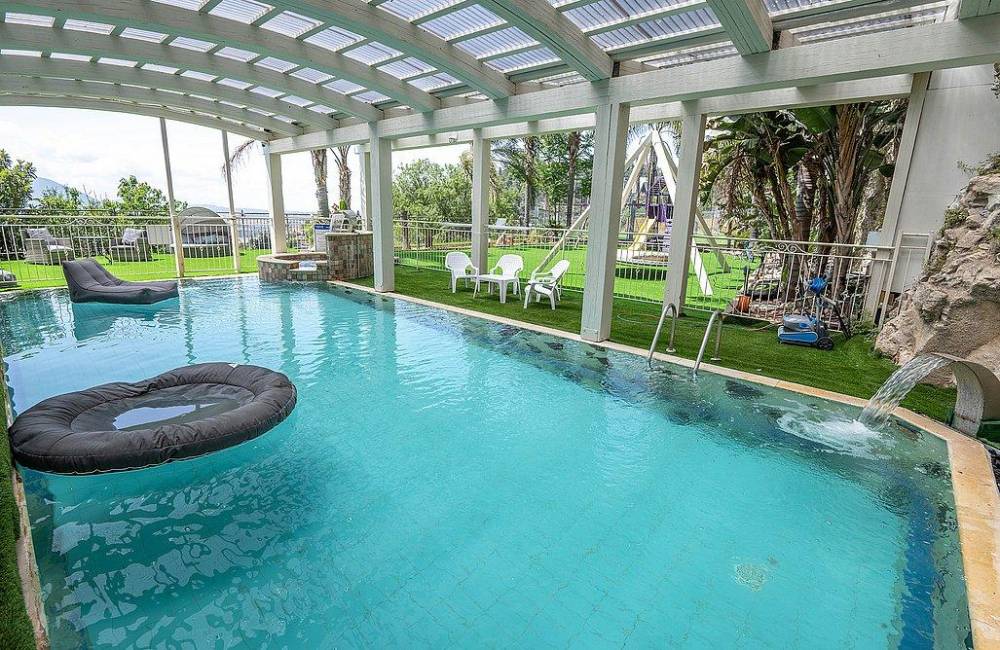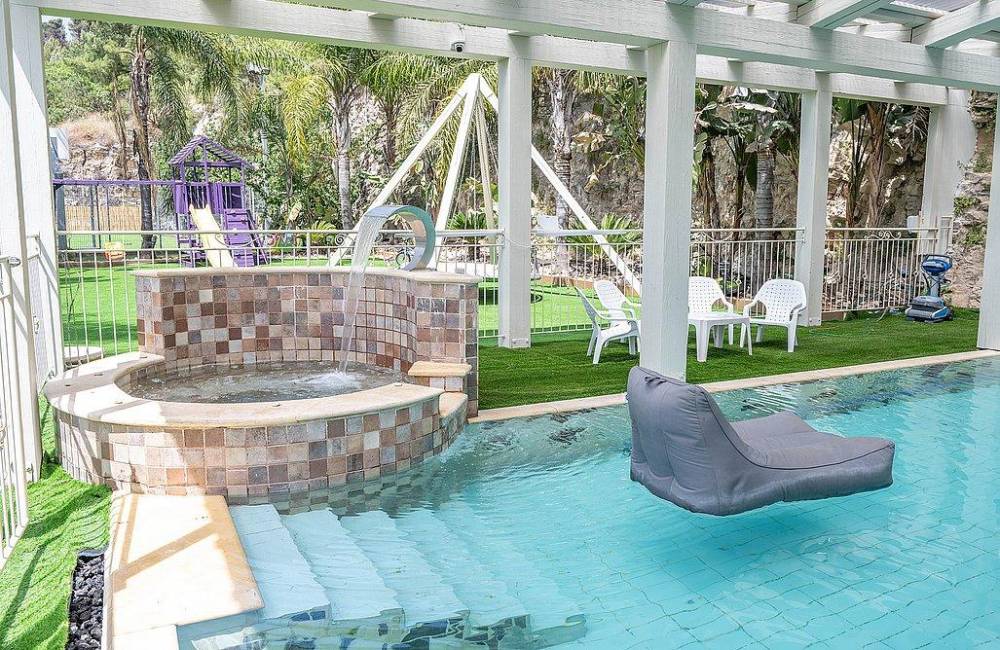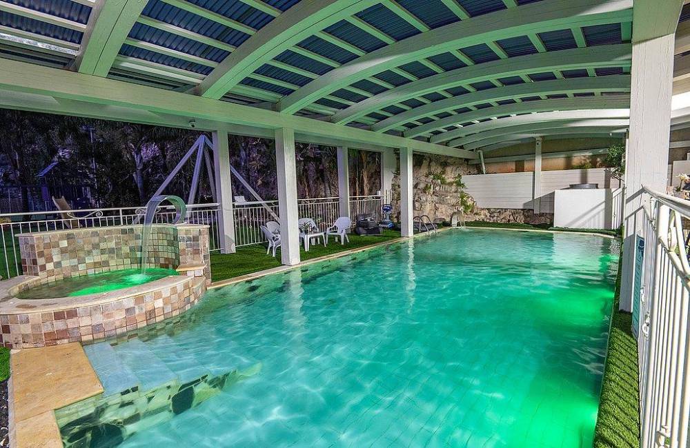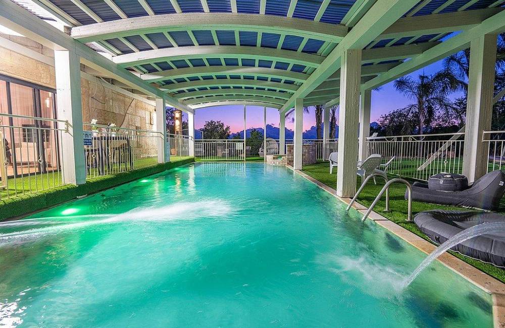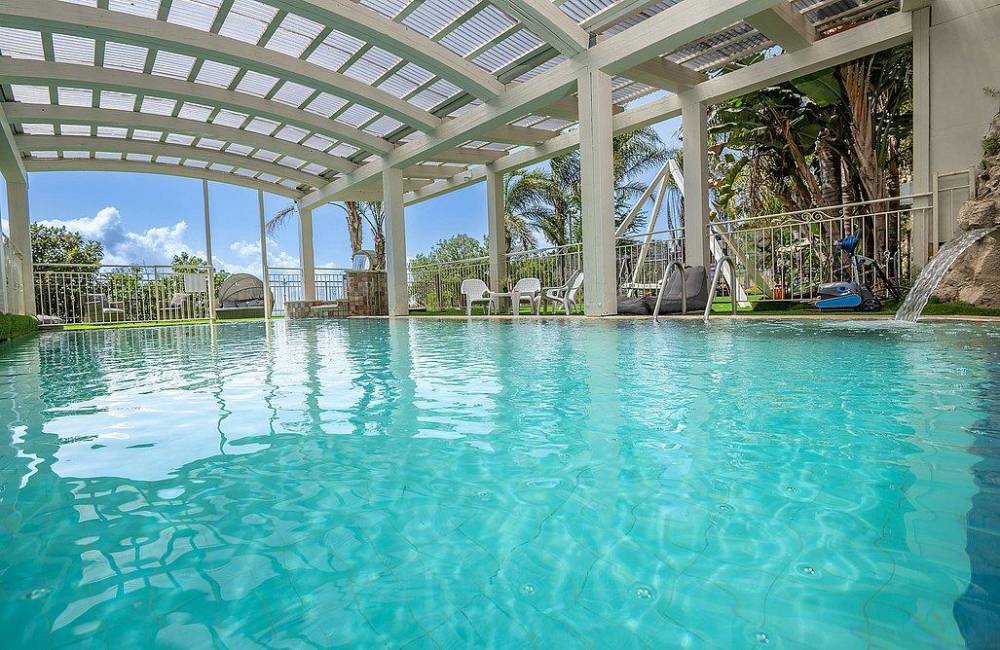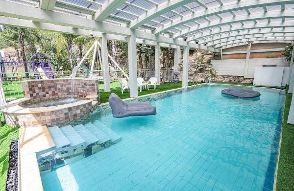 - בריכת שחייה פרטית מחוממת מקורה ומגודרת עם מפל מים