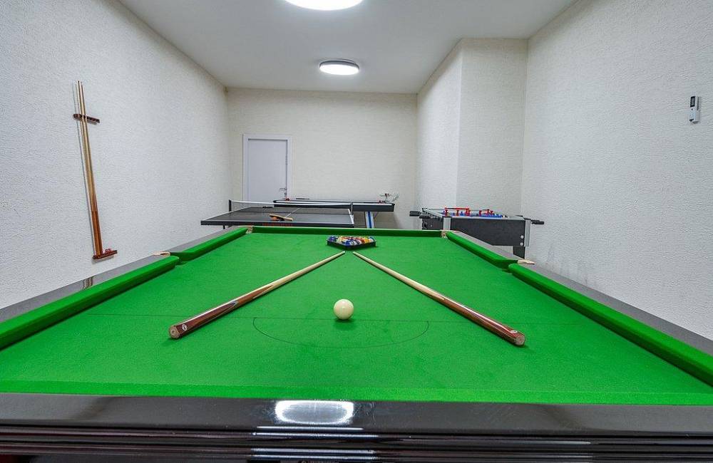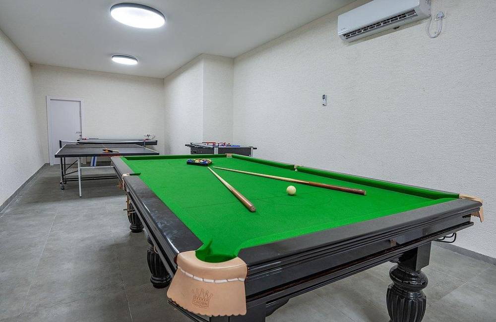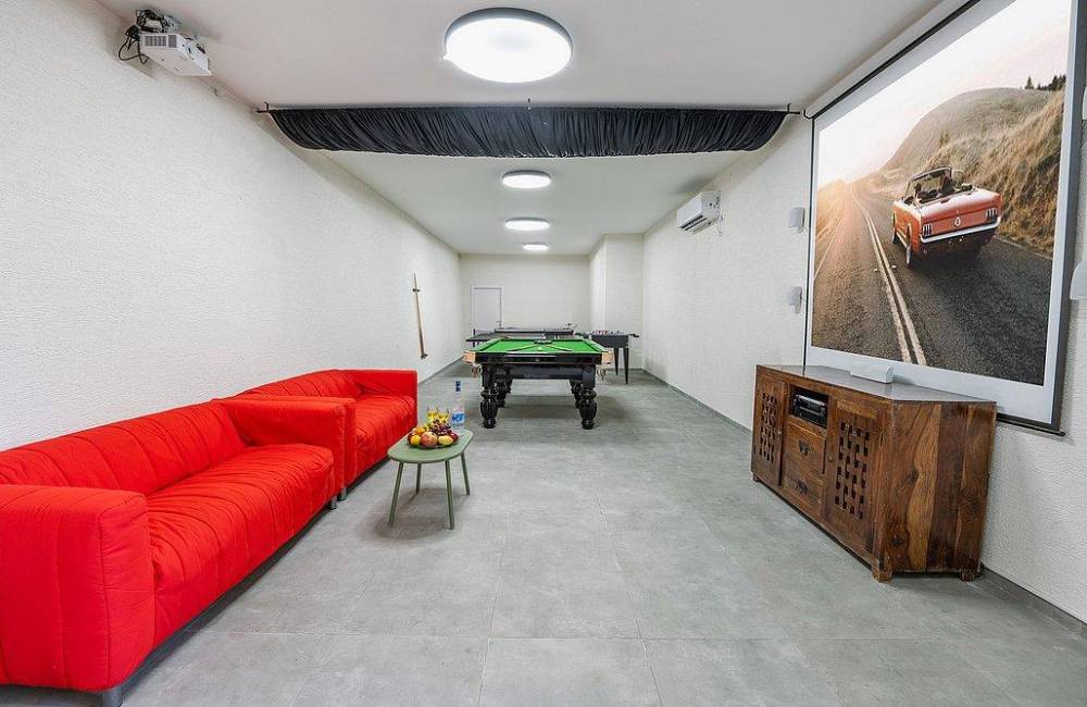 חדר קולנוע פרטי עם מקרן ומשחקי שולחן: סנוקר מקצועי, טניס שולחן, הוקי אוויר וכדורגל שולחן