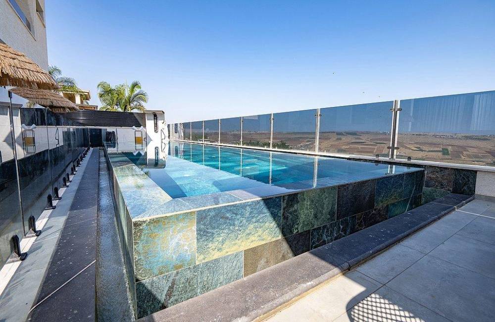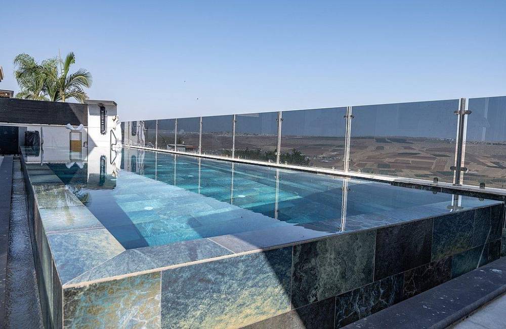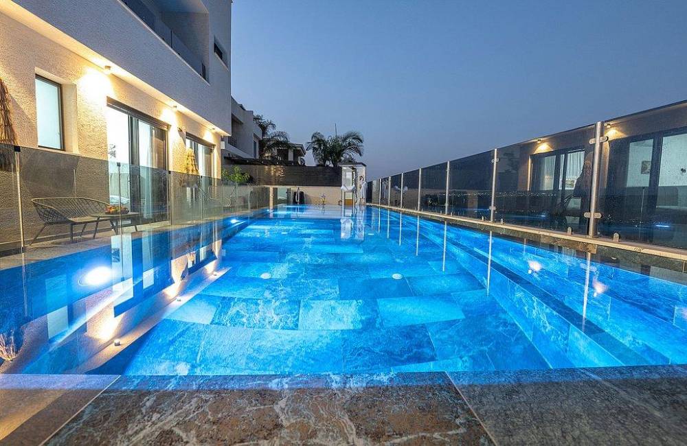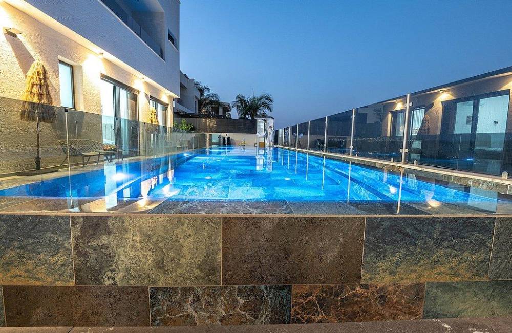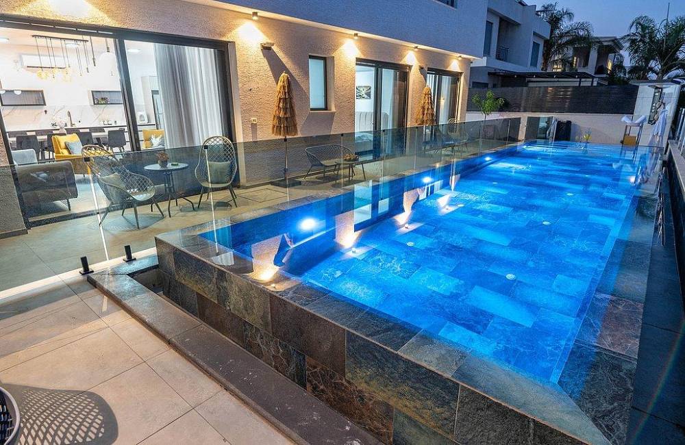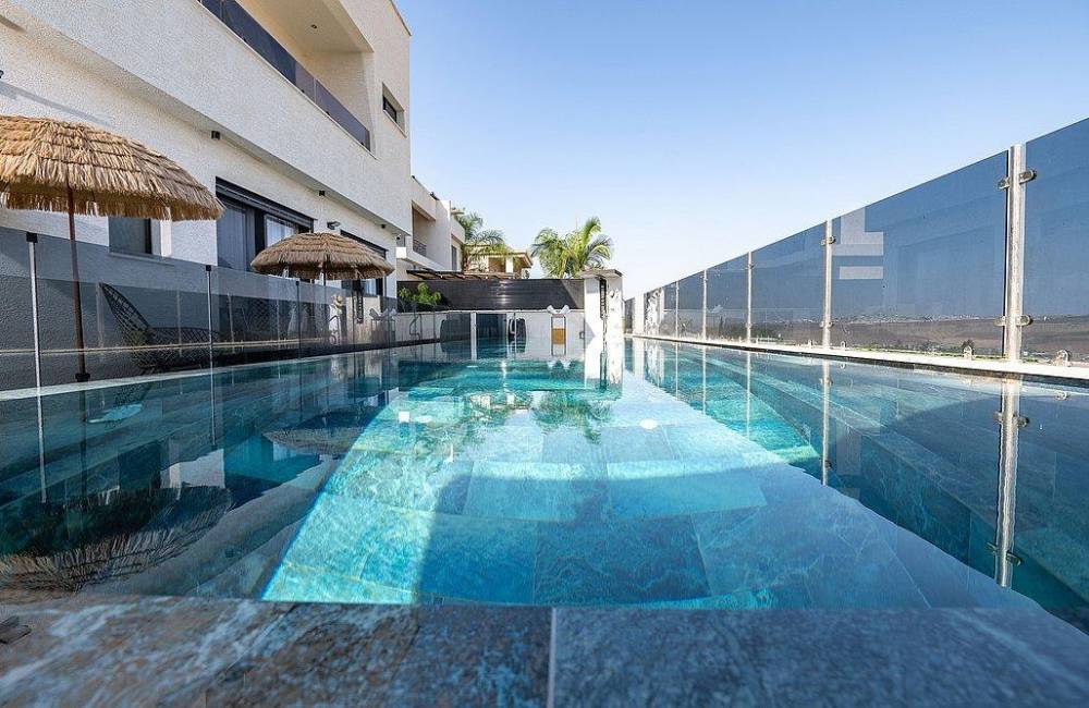 בריכה גדולה בגודל 12×3 מטר, מחוממת בחורף 38 מעלות