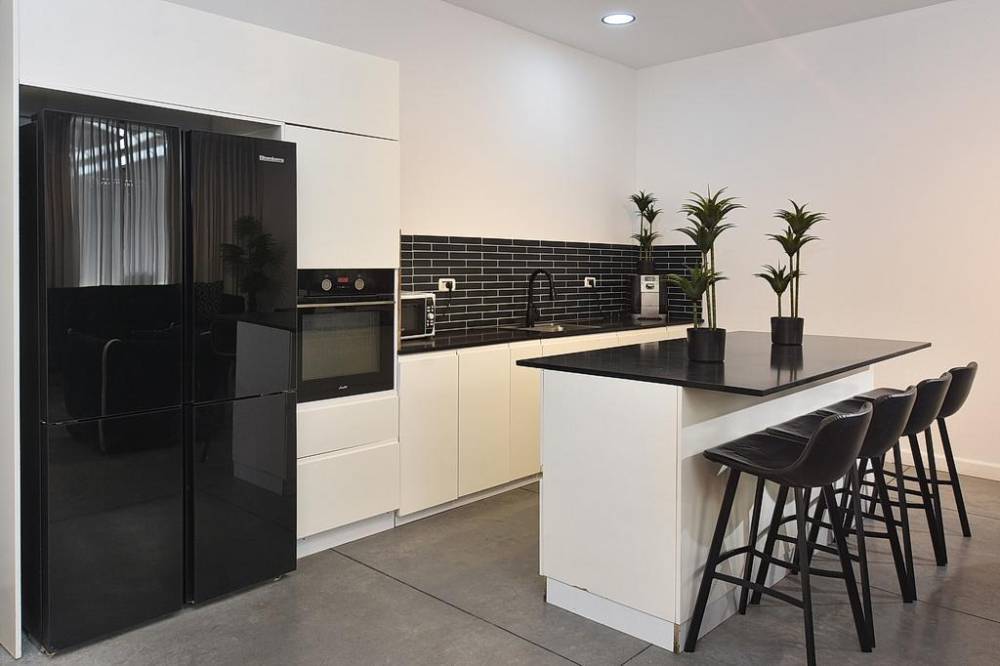 מטבח מאובזר- מקרר, כיור, תנור, פלטה חשמלית ומיחם