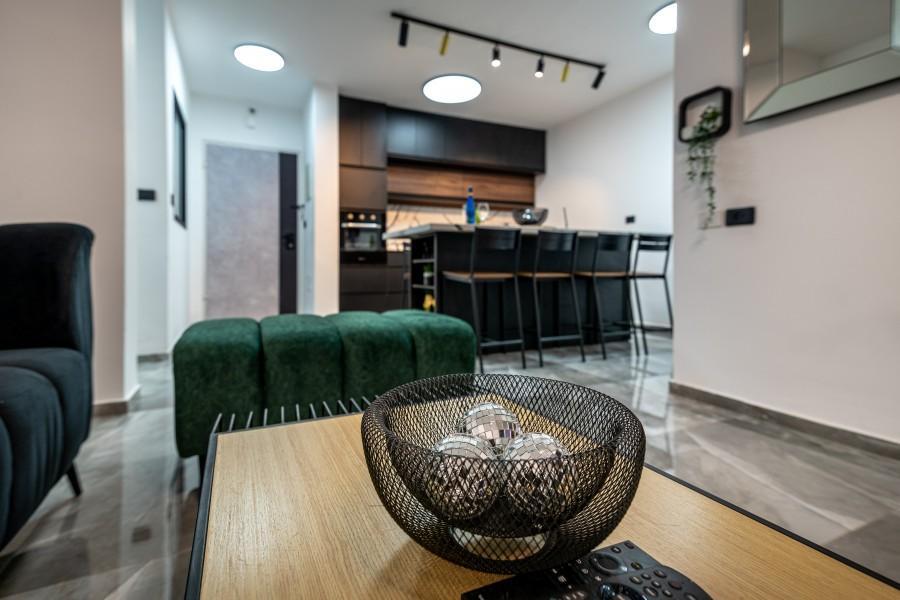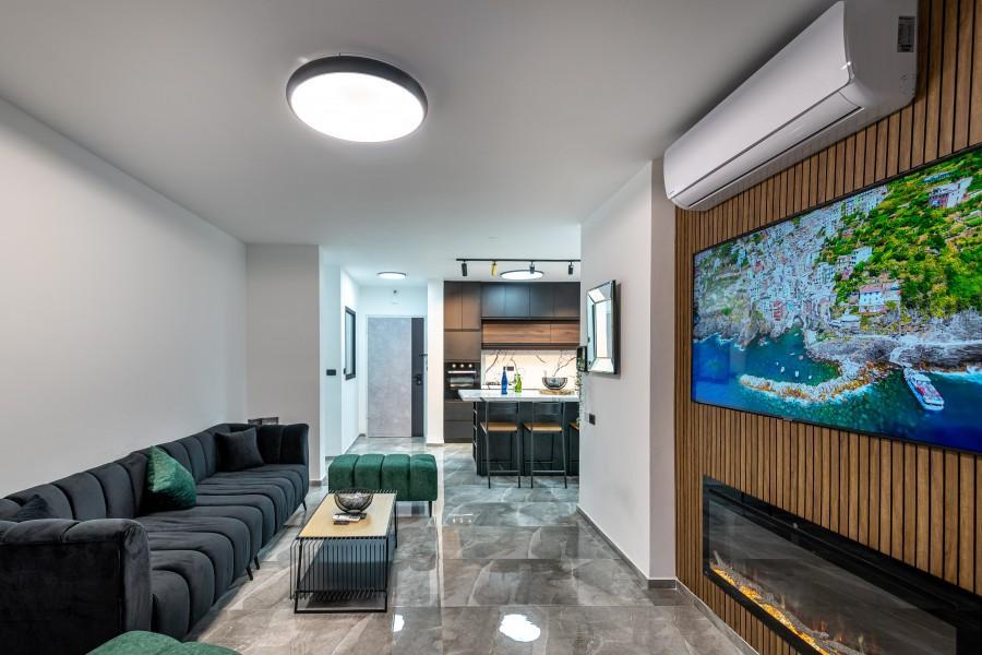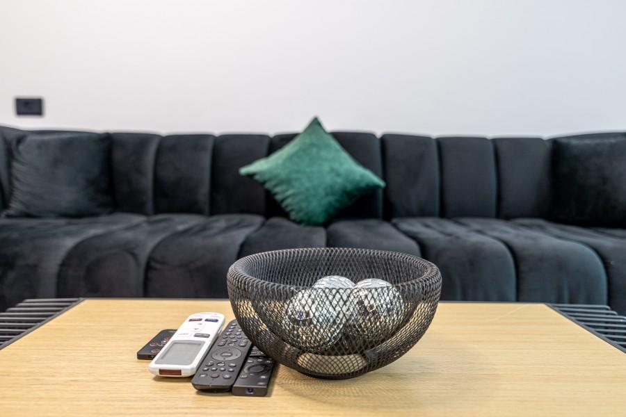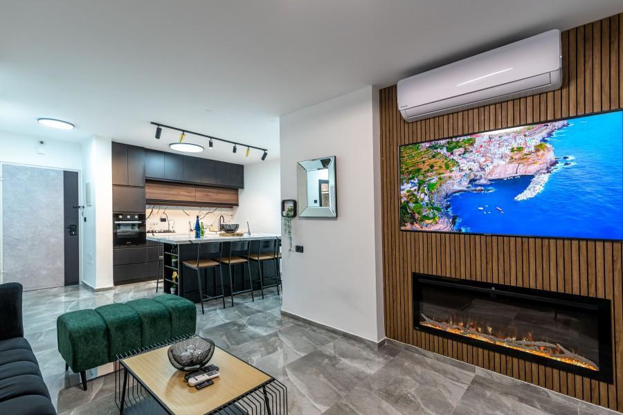 סלון רחב ידיים עם מערכת ישיבה מפנקת וטלוויזיה עם חיבור לכבלים