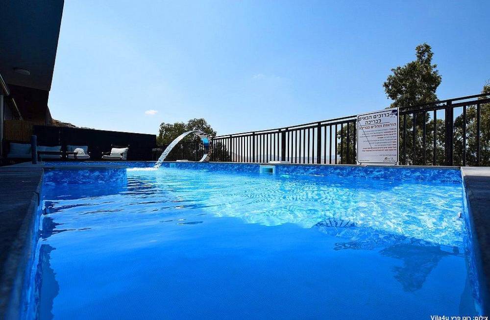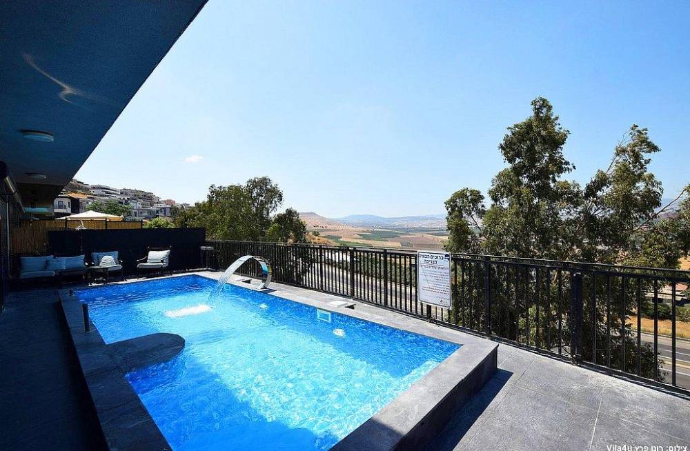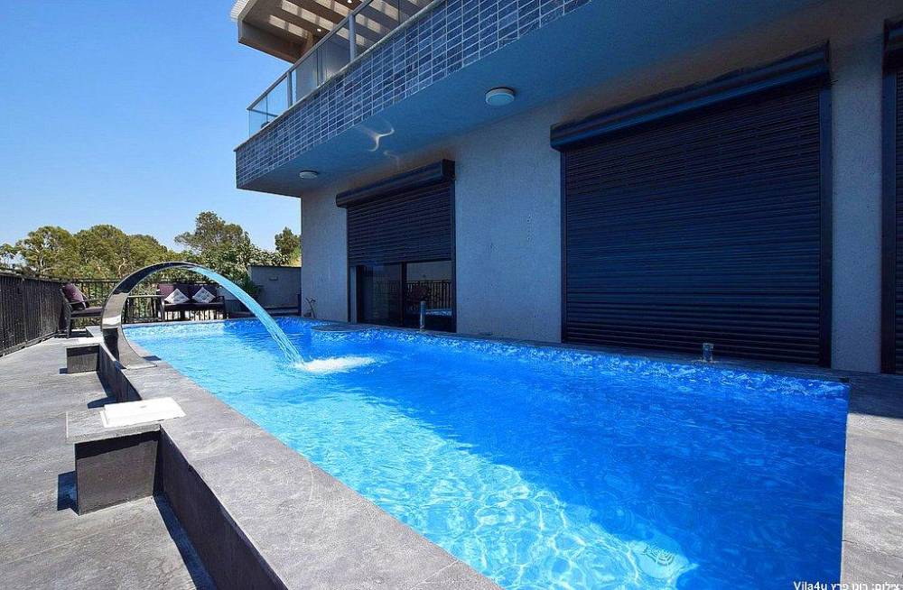 יציאה לבריכת שחייה עם מפל מים בגודל 7.5X3, הבריכה מחוממת בחודשי החורף