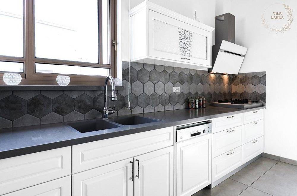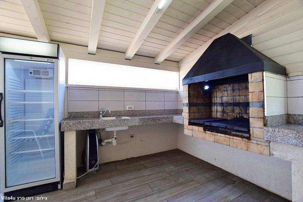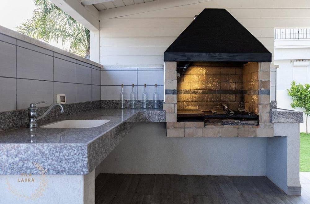 מרפסת מקורה עם מטבח חיצוני מאובזר ועמדת מנגל מקצועית