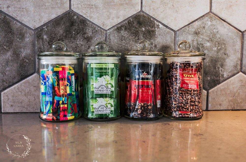 מטבח מאובזר קומפלט הכולל כיריים גז, מקרר, תנור, כיור כפול, מתקן מים, פינת קפה ותה, כלי אוכל והגשה