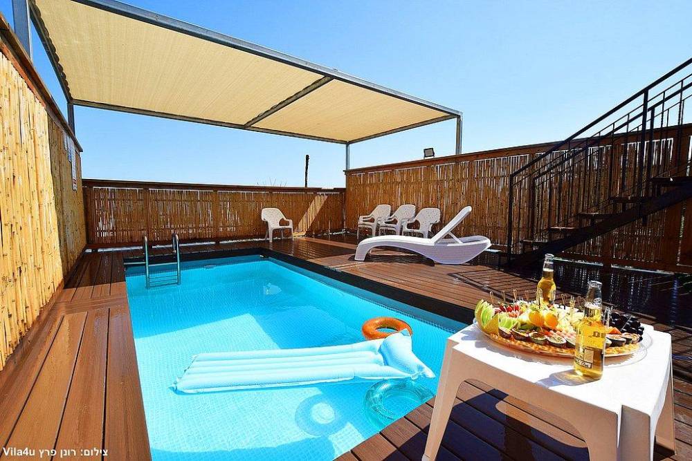 2 סוויטות יוקרתיות לאירוח, כל סוויטה מתאימה לאירוח זוג + 4 ילדים, בכל סוויטה תהנו מהאבזור האיכותי ביותר, 2 חדרי שינה יחכו לכם בכל סוויטה, חדר רחצה מפנק ועוד שירותים נוסף, מטבח מאובזר מכל טוב כך שלא יחסר לכם כלום במהלך השהות שלכם, סלון מעוצב עם מסך טלוויזיה חכם, מרפסת נוף משגעת הצופה לנוף מושלם, בריכת שחיה מחוממת ומגוון פינות ישיבה ושיזוף שישדרגו לכם את כל החוויה.