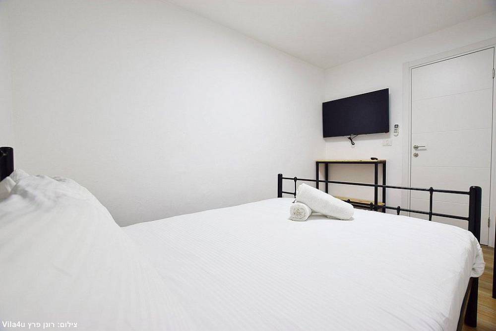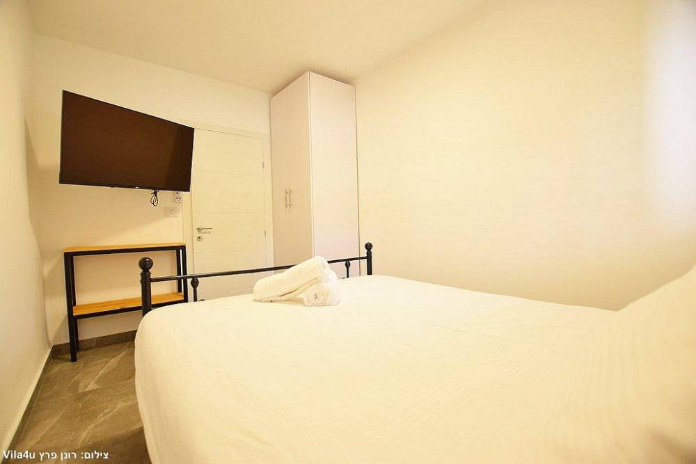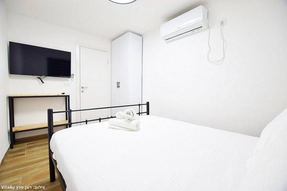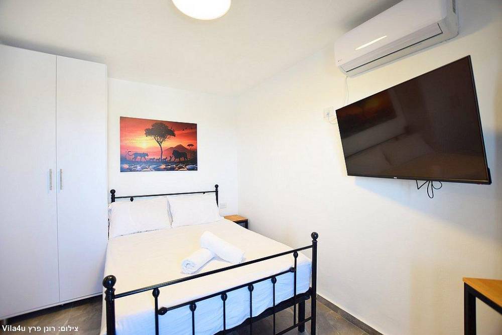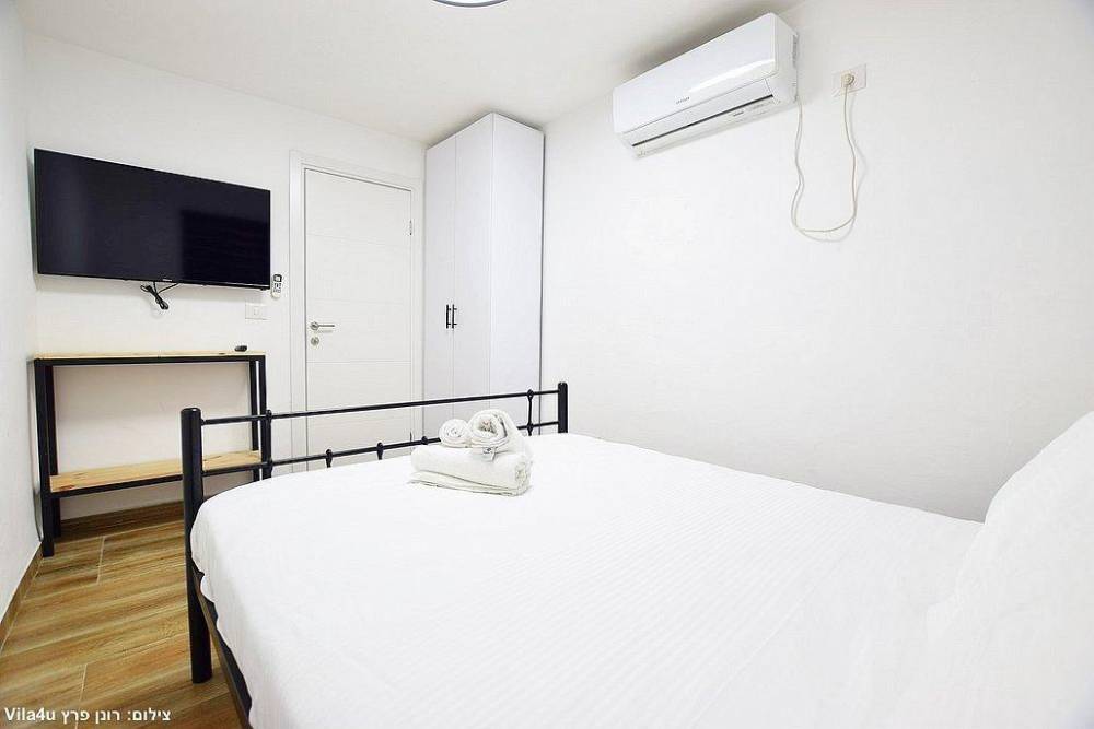 אבזור החדרים בסוויטות: מיטה זוגית, מזגן טלוויזיה חכמה בגודל 43 אינץ', ארון לאחסון