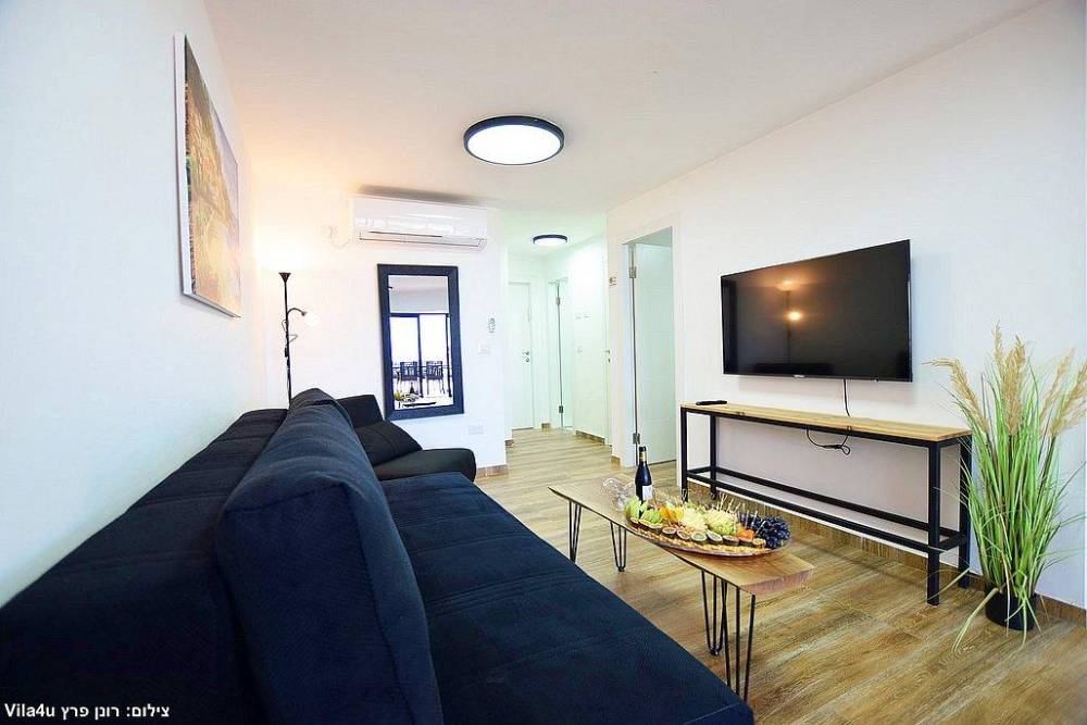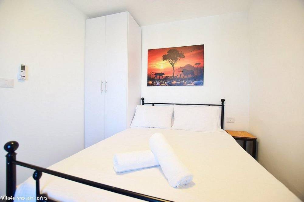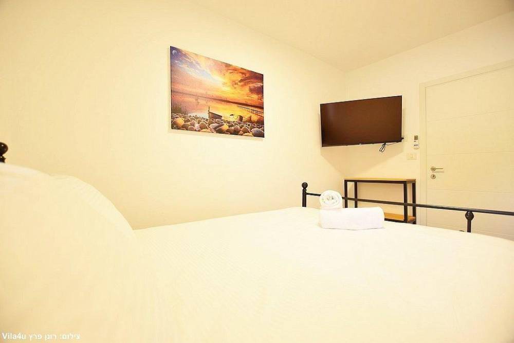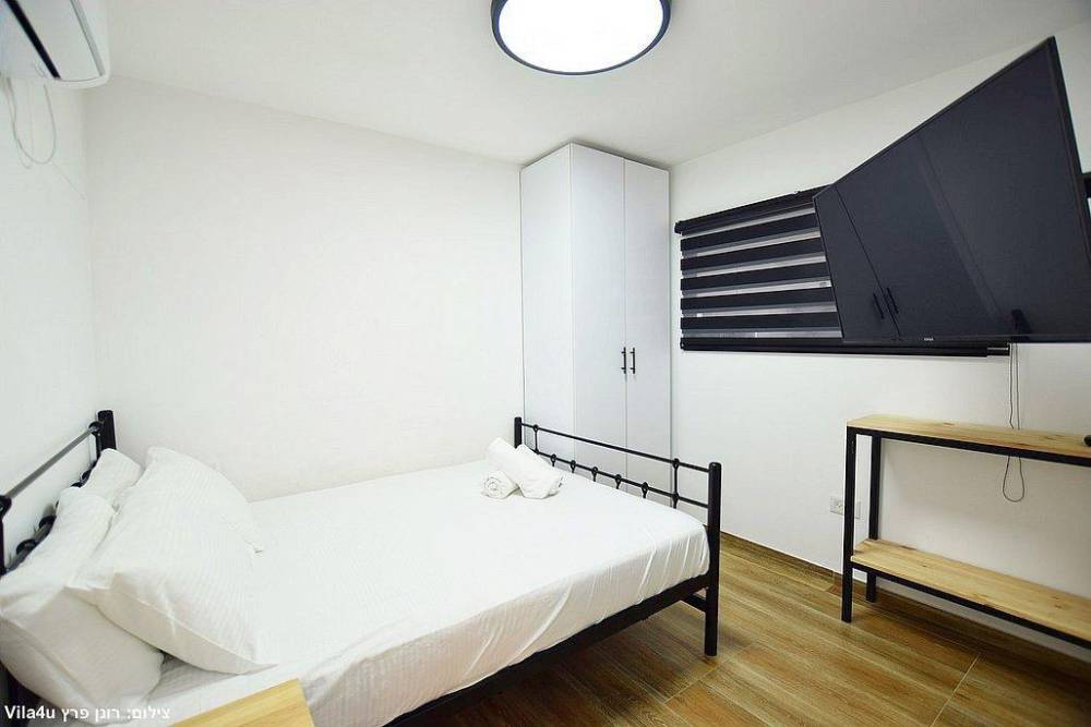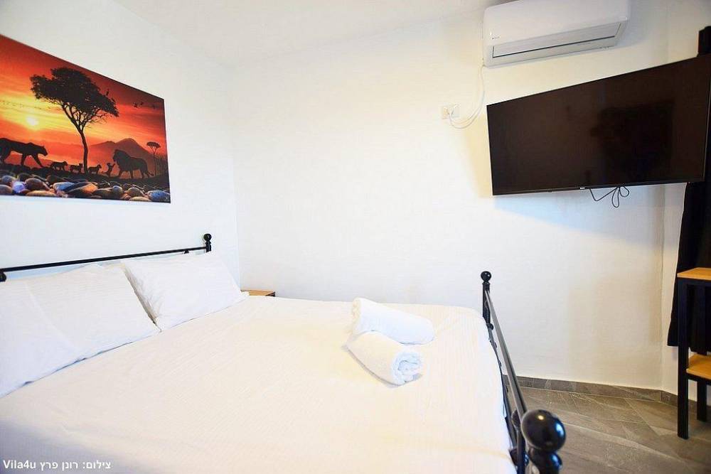 אבזור החדרים בסוויטות: מיטה זוגית, מזגן טלוויזיה חכמה בגודל 43 אינץ', ארון לאחסון