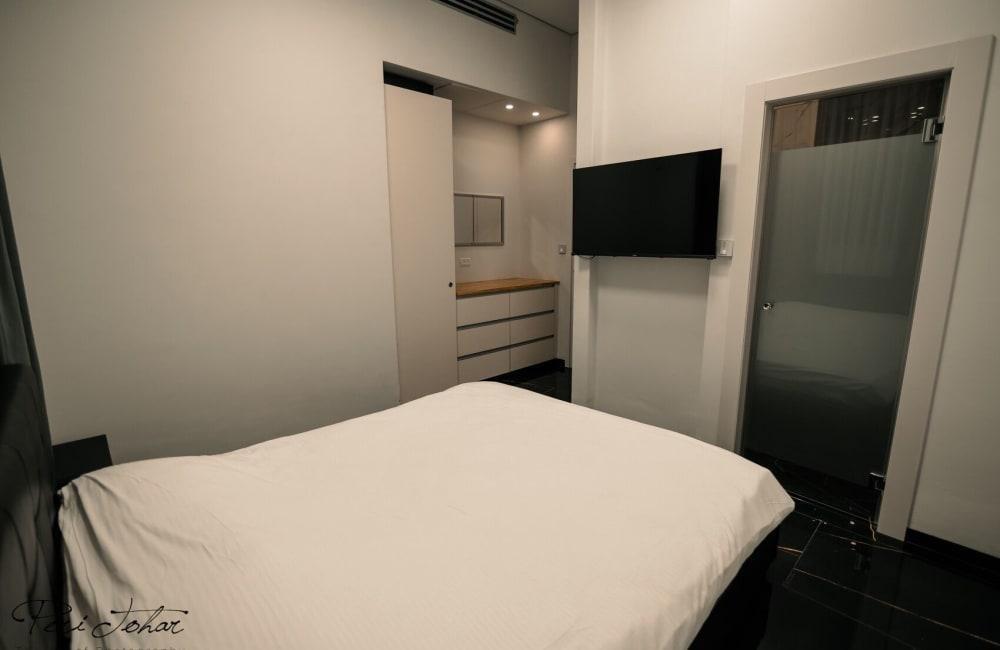 מיטה זוגית מוצעת, מיזוג אוויר, שידות, מסך צפייה, חדר רחצה פרטי