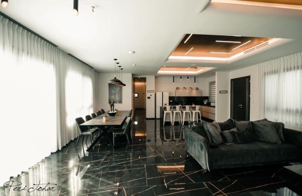 סלון מרווח + מערכת קולנוע ביתית, מסך LCD 75 אינץ' , חיבור ל-YES עם מגוון ערוצים