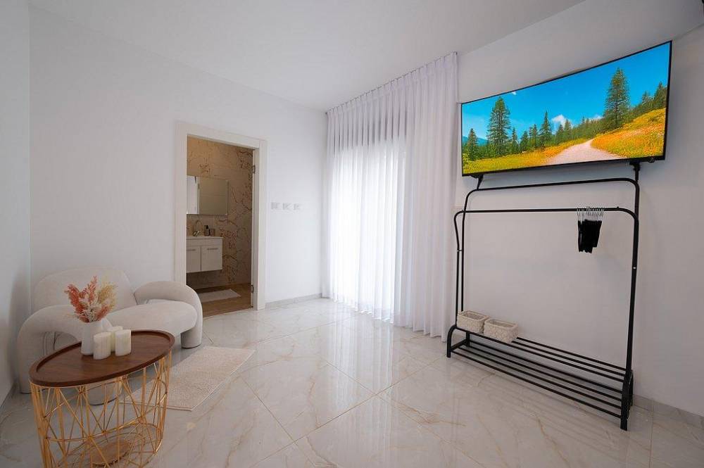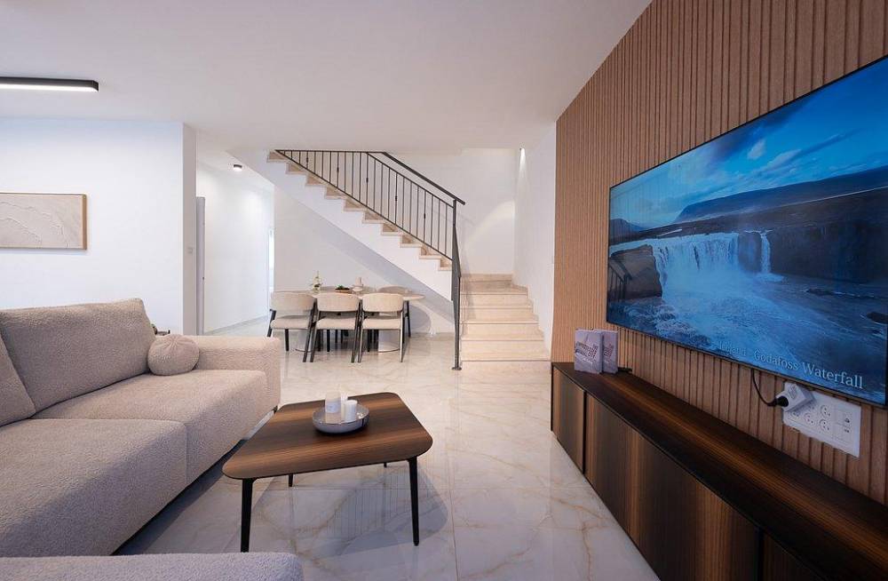 סלון רחב ידיים מערכת ישיבה נוחה ומסך LCD