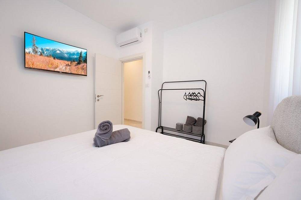 כל חדר מאובזר במיטה זוגית מוצעת, ארונית לתליית בגדים, מסך טלוויזיה ומיזוג אוויר.