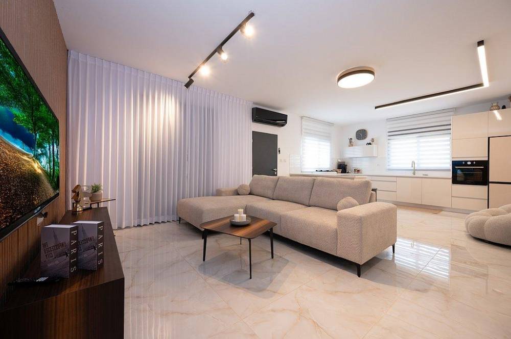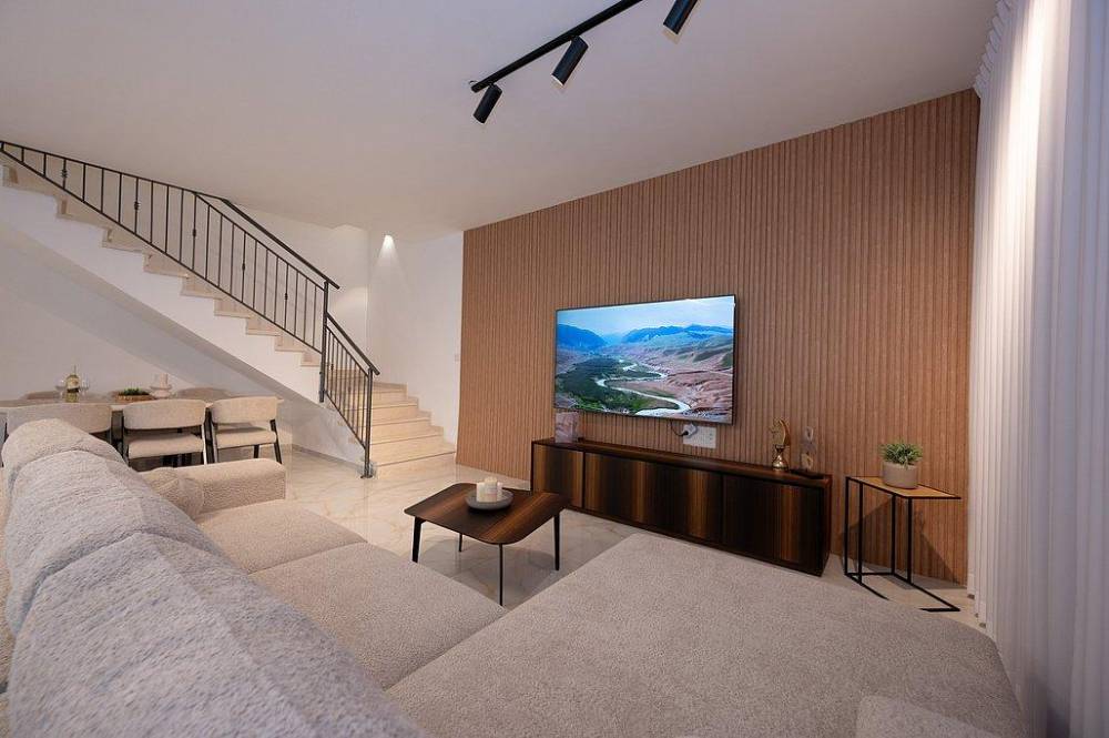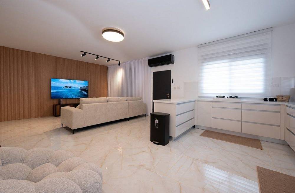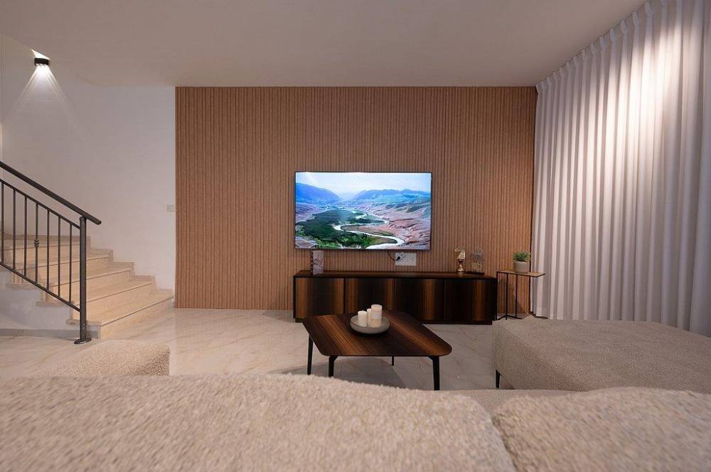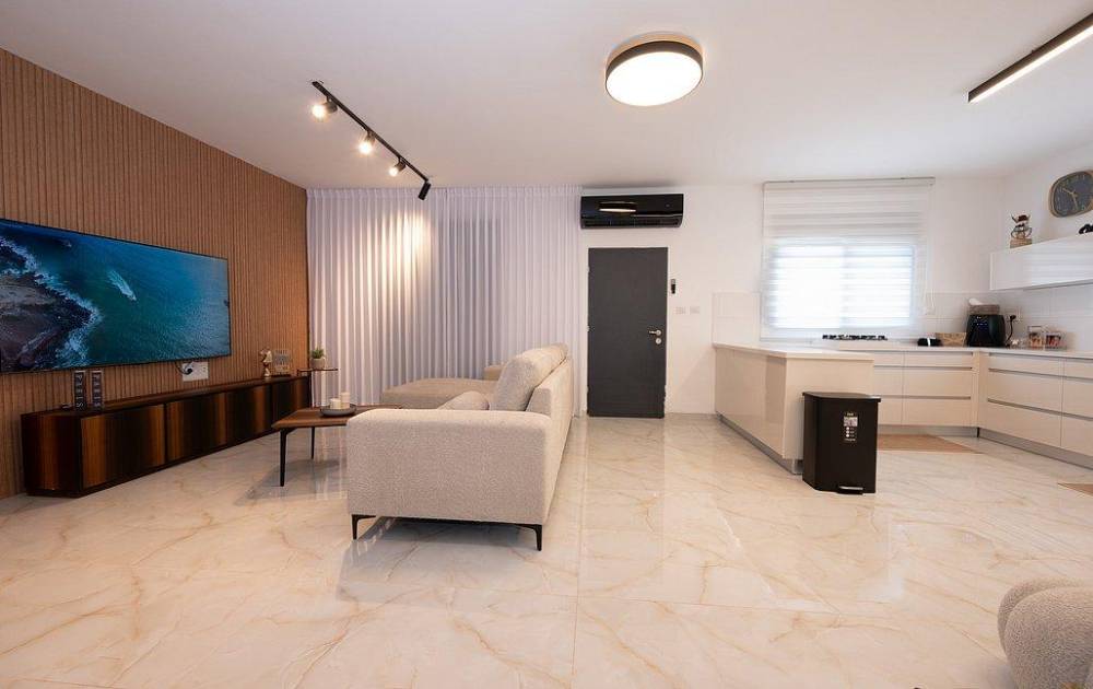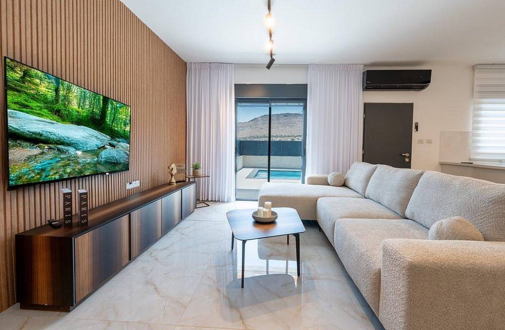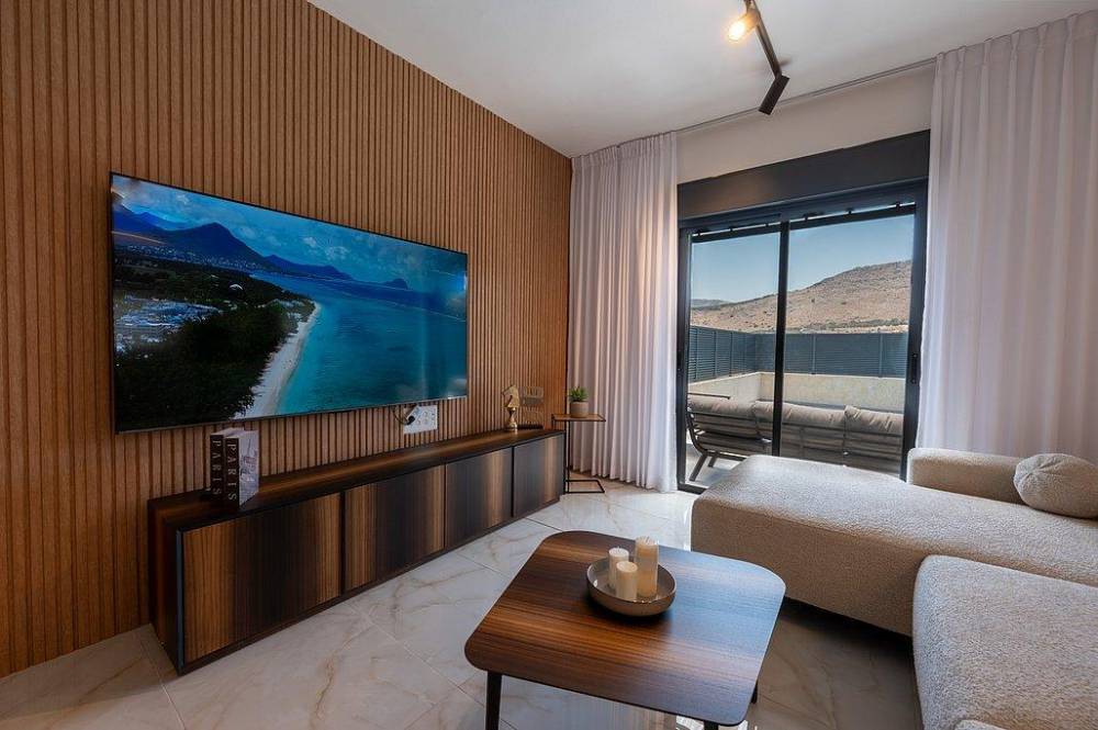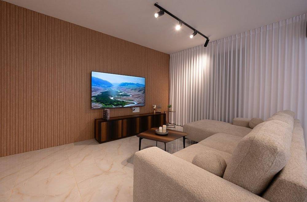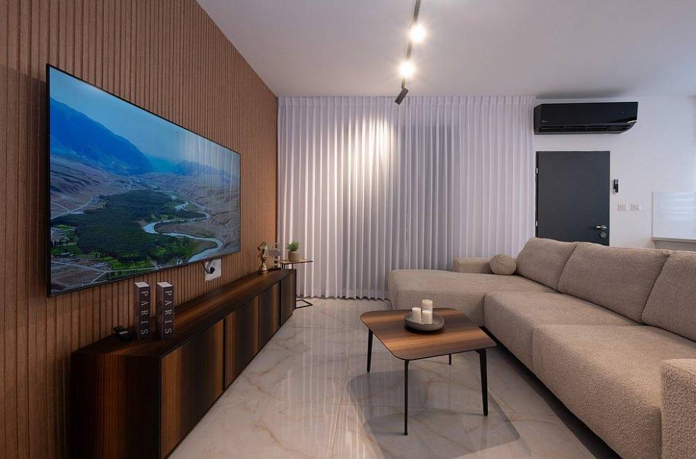 סלון מרווח עם מערכת ישיבה מפנקת ומסך LCD