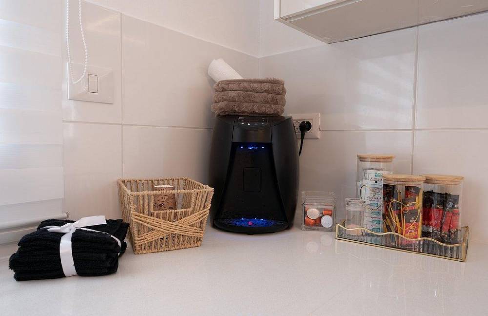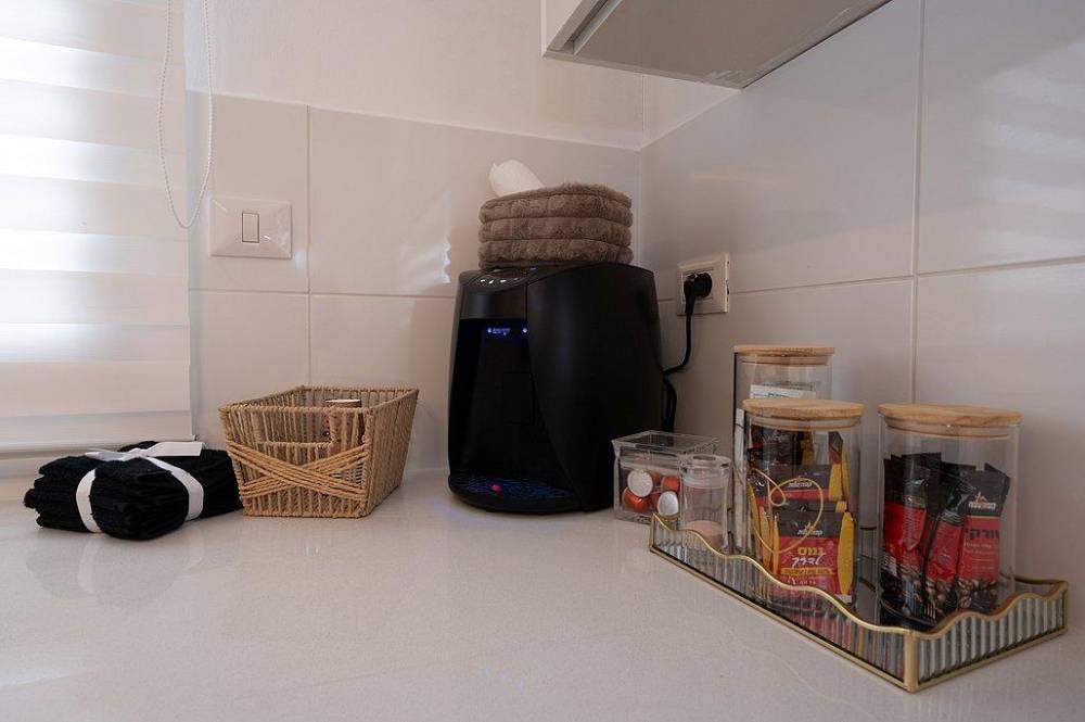 מטבח מאובזר הכולל: מקרר, מקפיא, כיריים גז, תנור אפיה, בר מים ופינת קפה