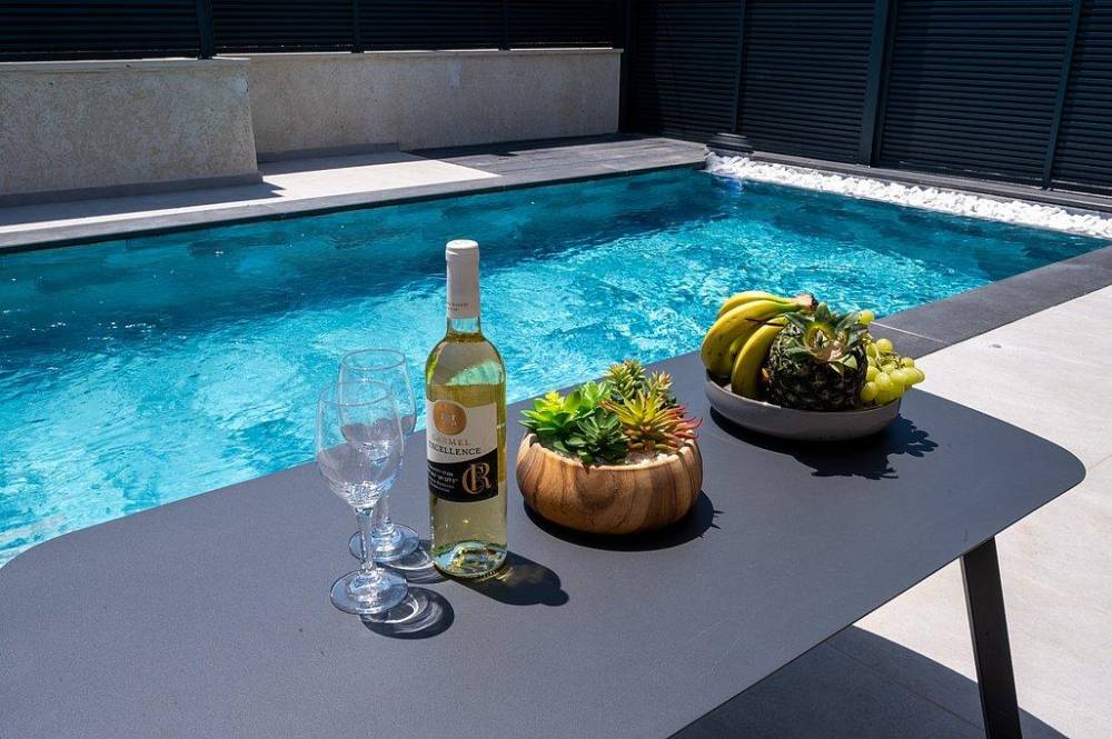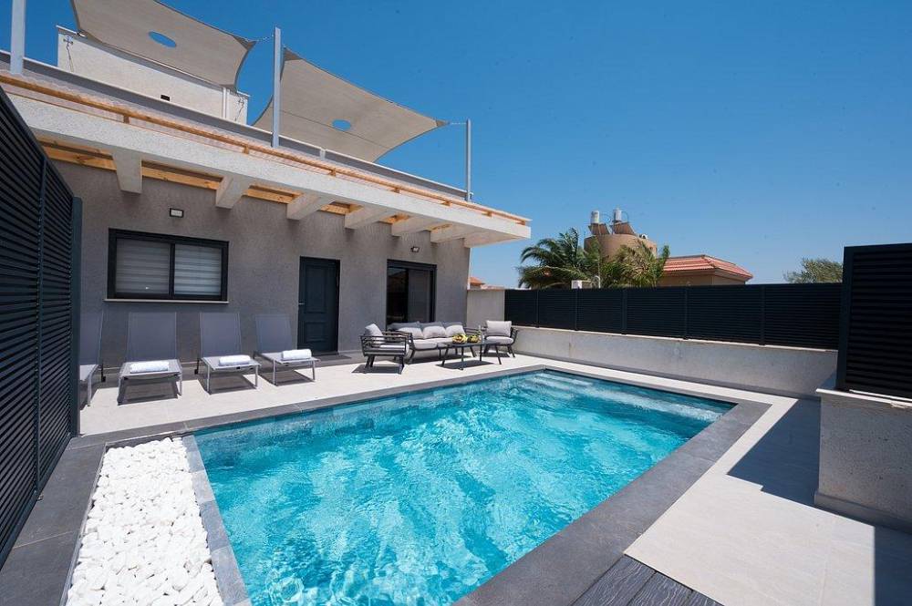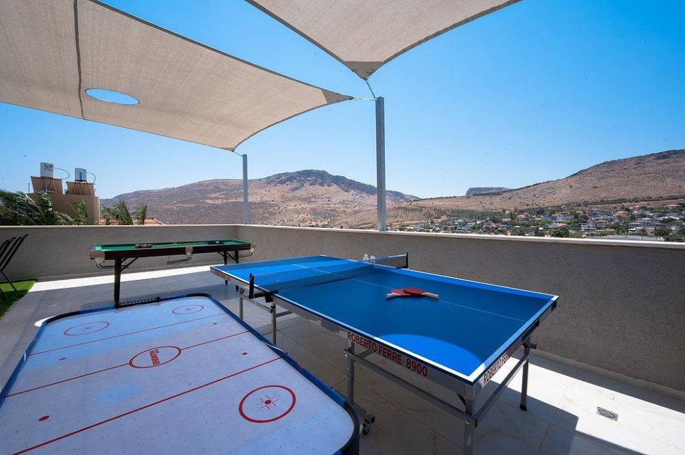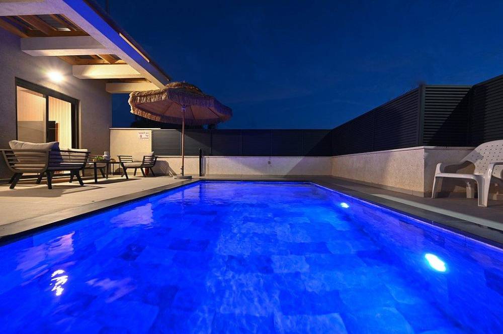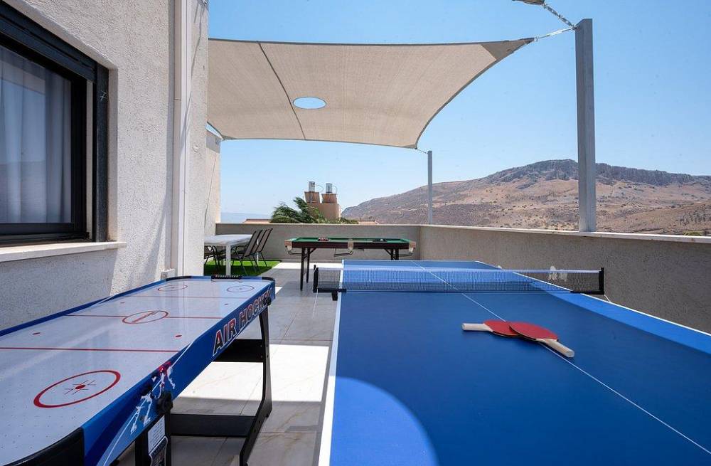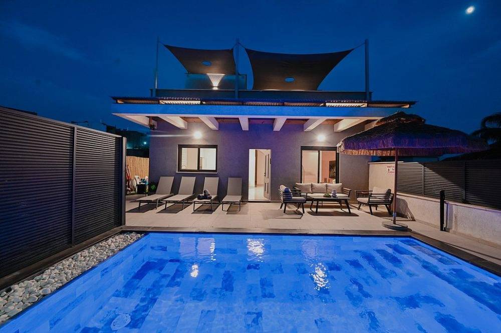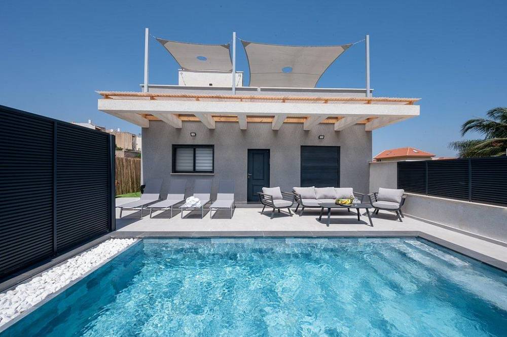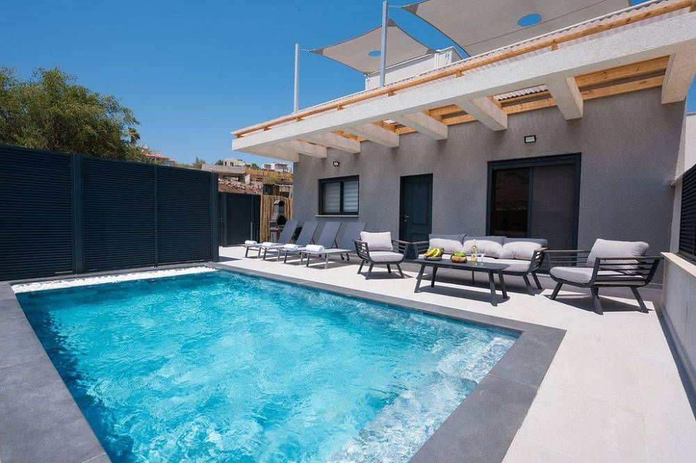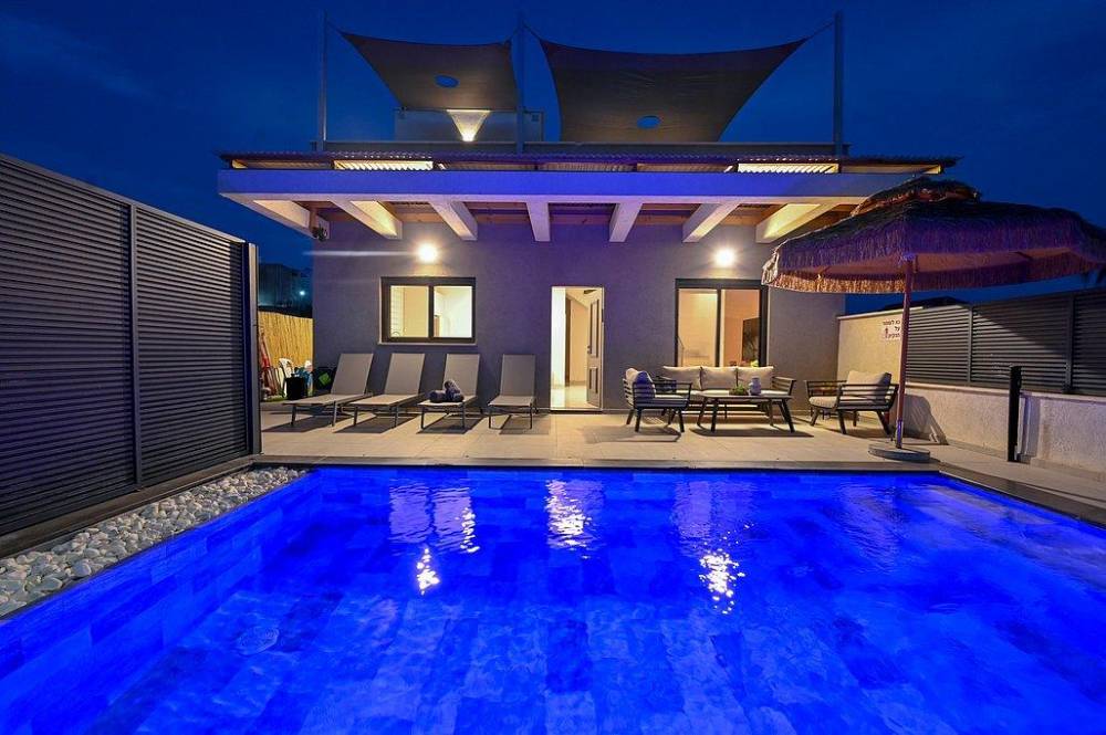 מתחם חיצוני עם בריכה פרטית מחוממת ומקורה בחורף, שולחנות משחק, מתחם פנים מודרני ויוקרתי, מאובזר עד לפרט האחרון, חדרי שינה נוחים ומעוצבים בטוב טעם