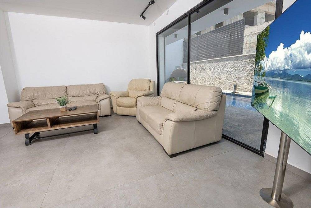 סלון גדול עם 2 ספות וטלוויזיה עם חיבור לערוצי YES