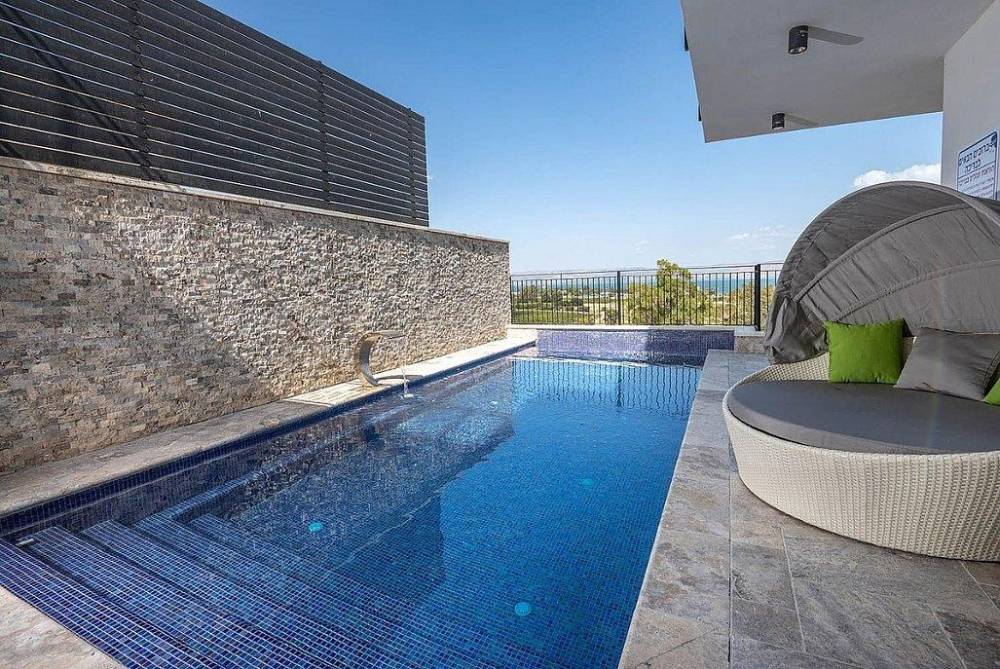 בריכת שחייה מחוממת ומגודרת עם כדורסל