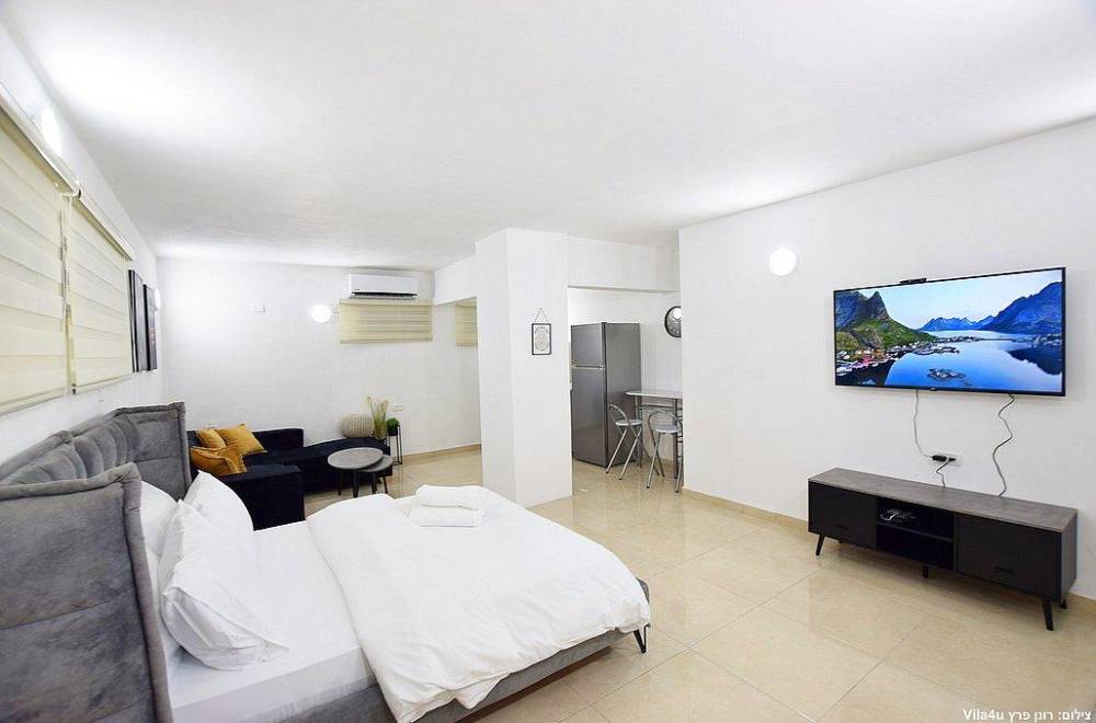 מיטה זוגית, טלוויזיה עם חיבור לכבלים, סלון עם ספה נפתחת, מטבח, חדר רחצה עם עם מקלחת ושירותים, מיזוג אוויר ושידות לאחסון